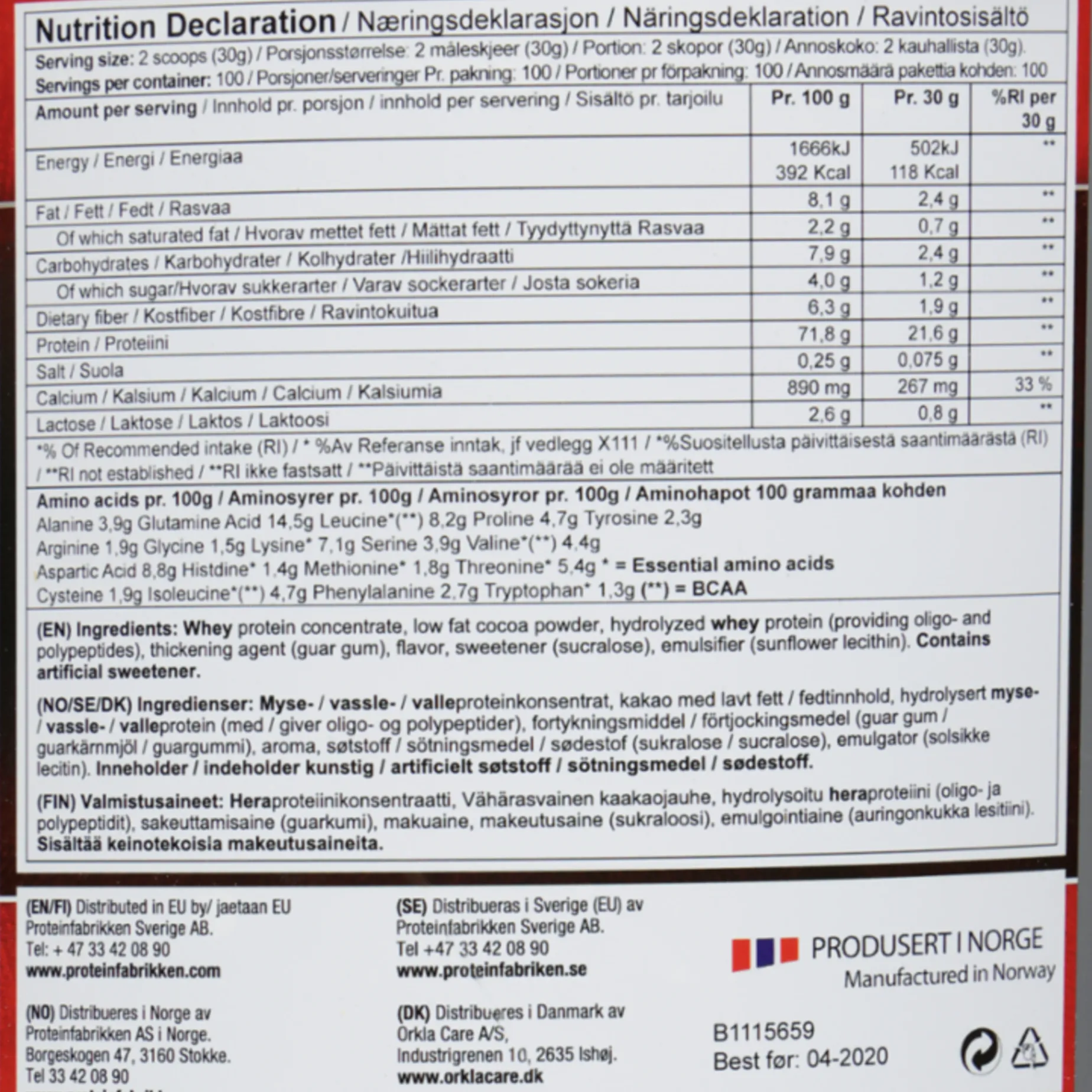 Proteintilskuddet inneholder viktige aminosyrer og reparerer og bygger muskulatur.
