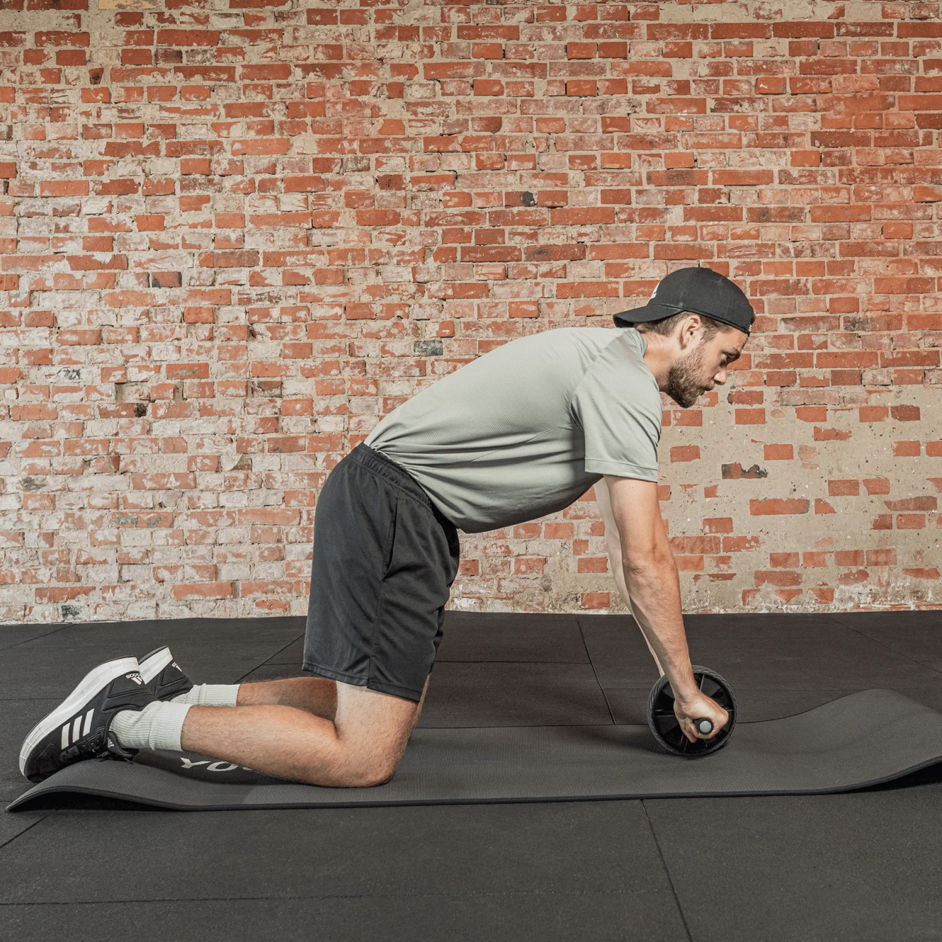 Nybegynnere kan starte med å knele og skyve hjulet ut foran seg selv, så langt magemusklene kan holde deg. Jo lenger du kommer ned, jo mer vil kroppsvekten utfordre stabilitet og styrke.