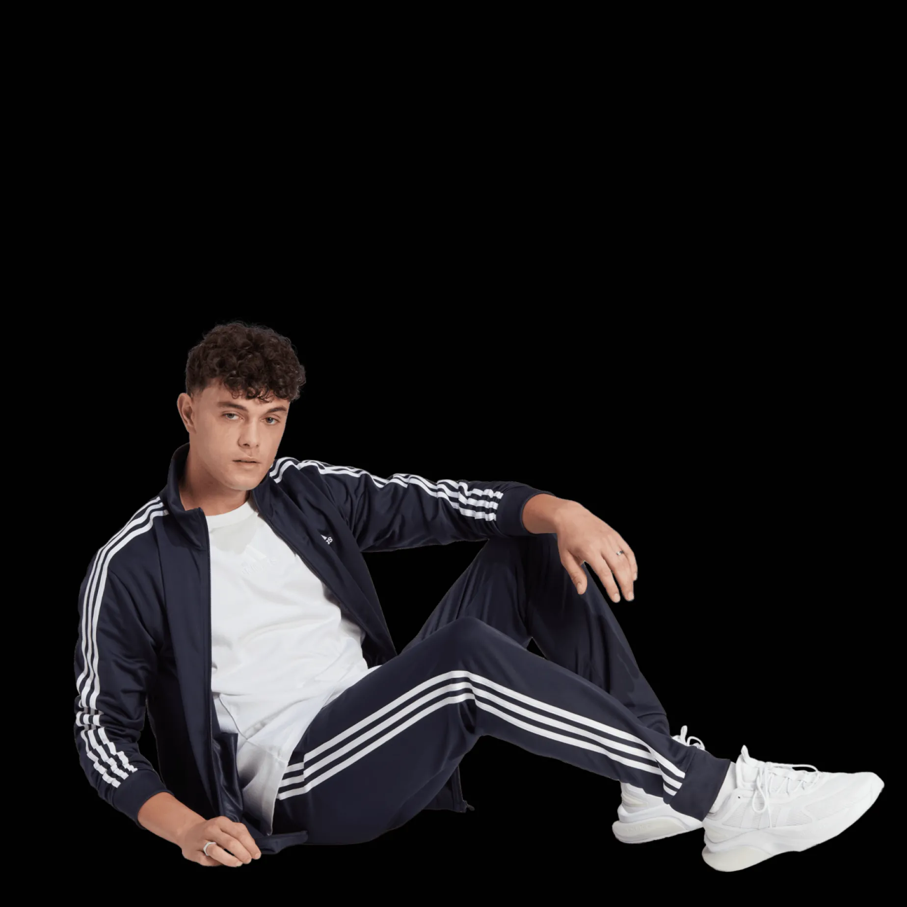 Klassisk, retroinspirert tracksuit med tre ikoniske striper langs siden på både jakke og bukse.