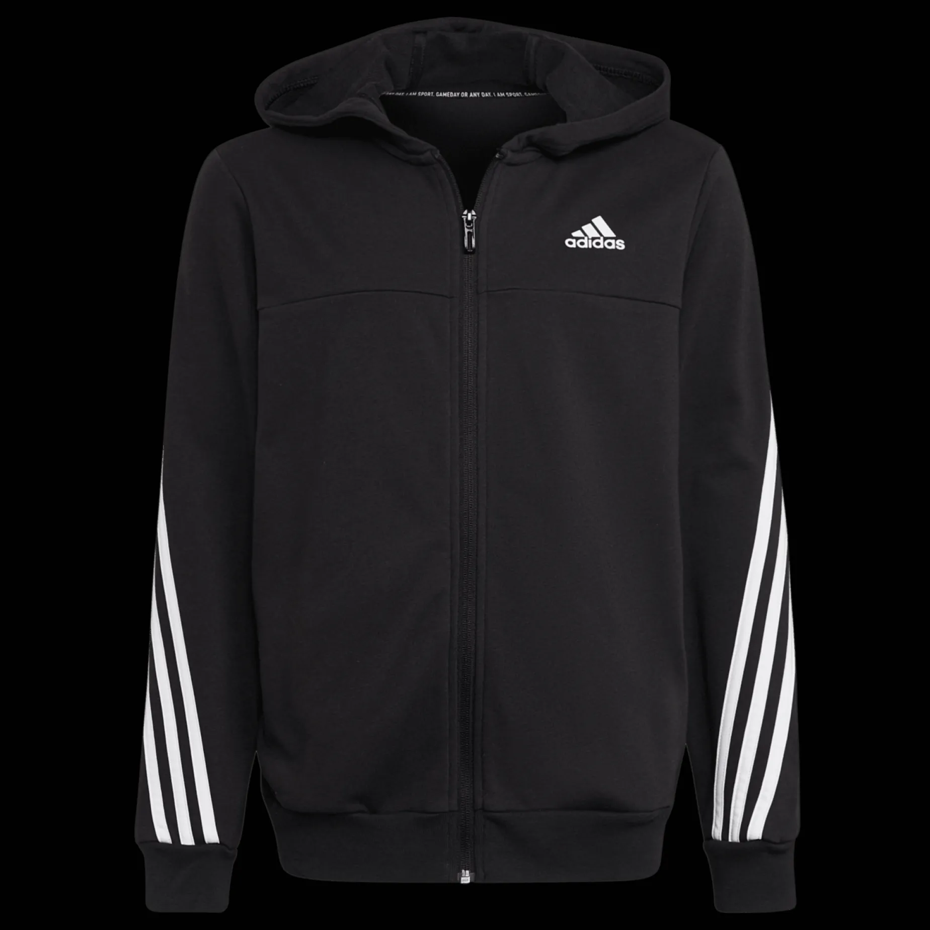 – Liten adidas-logo ved venstre bryst på jakken og venstre lår på buksen