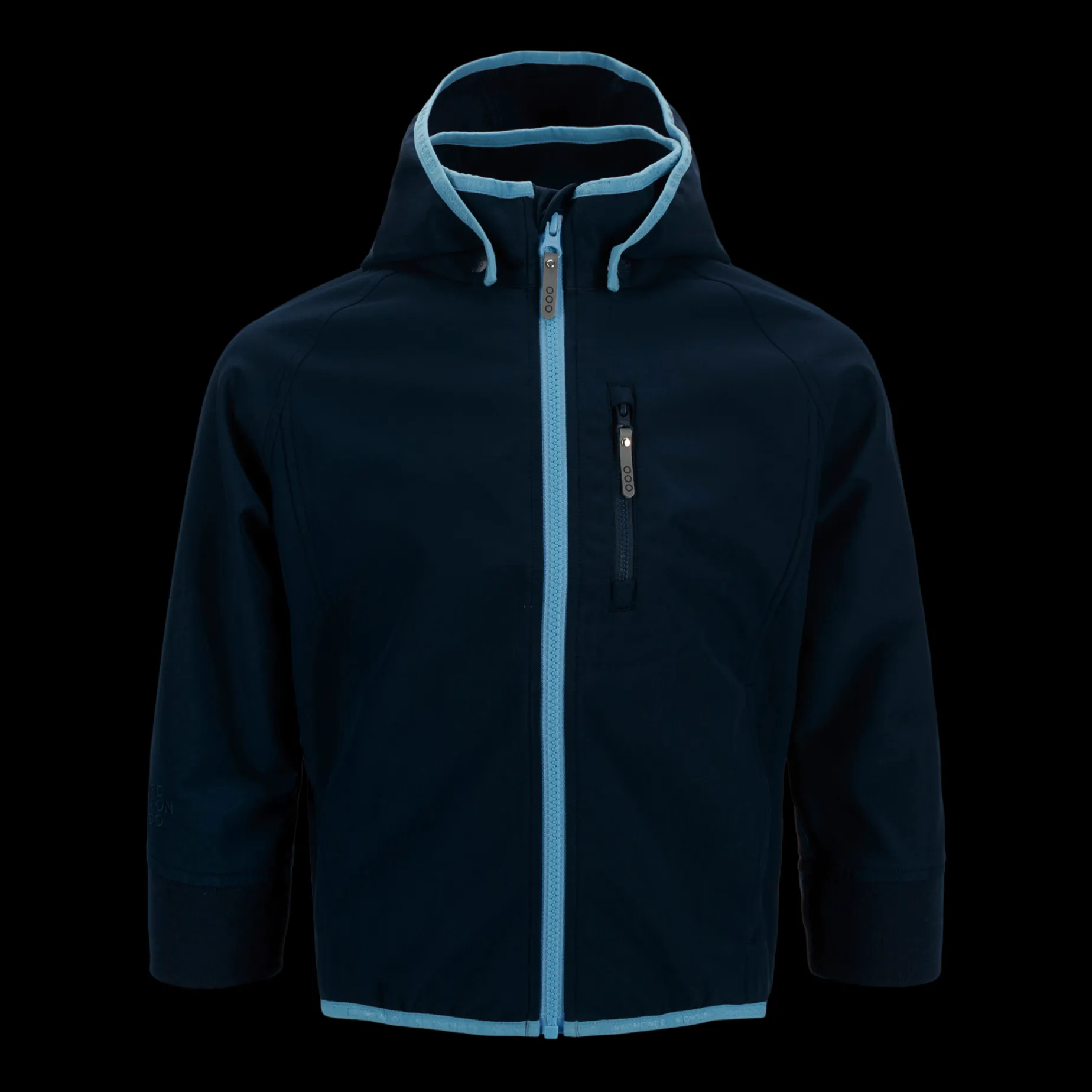 Anvendelig softshelljakke i lett vann- og vindavvisende materiale. Avtakbar hette, elastiske mansjetter og brystlomme med glidelås.