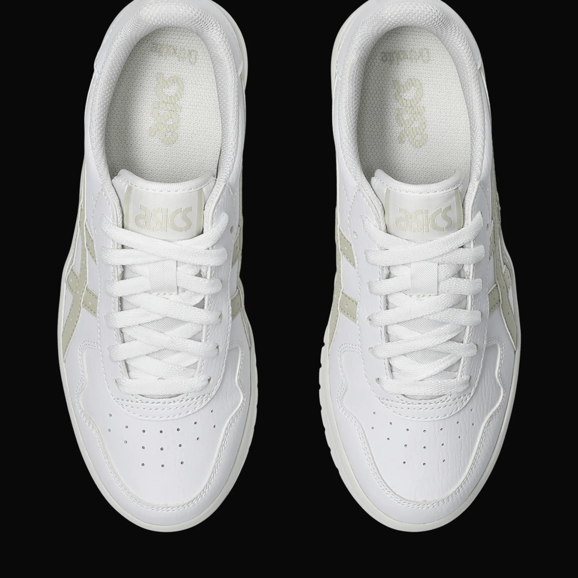 Overdelen er kledd med et syntetisk materiale, og klassisk lukking med snøring. På siden er det klassiske Asics-mønsteret med perforerte hull.