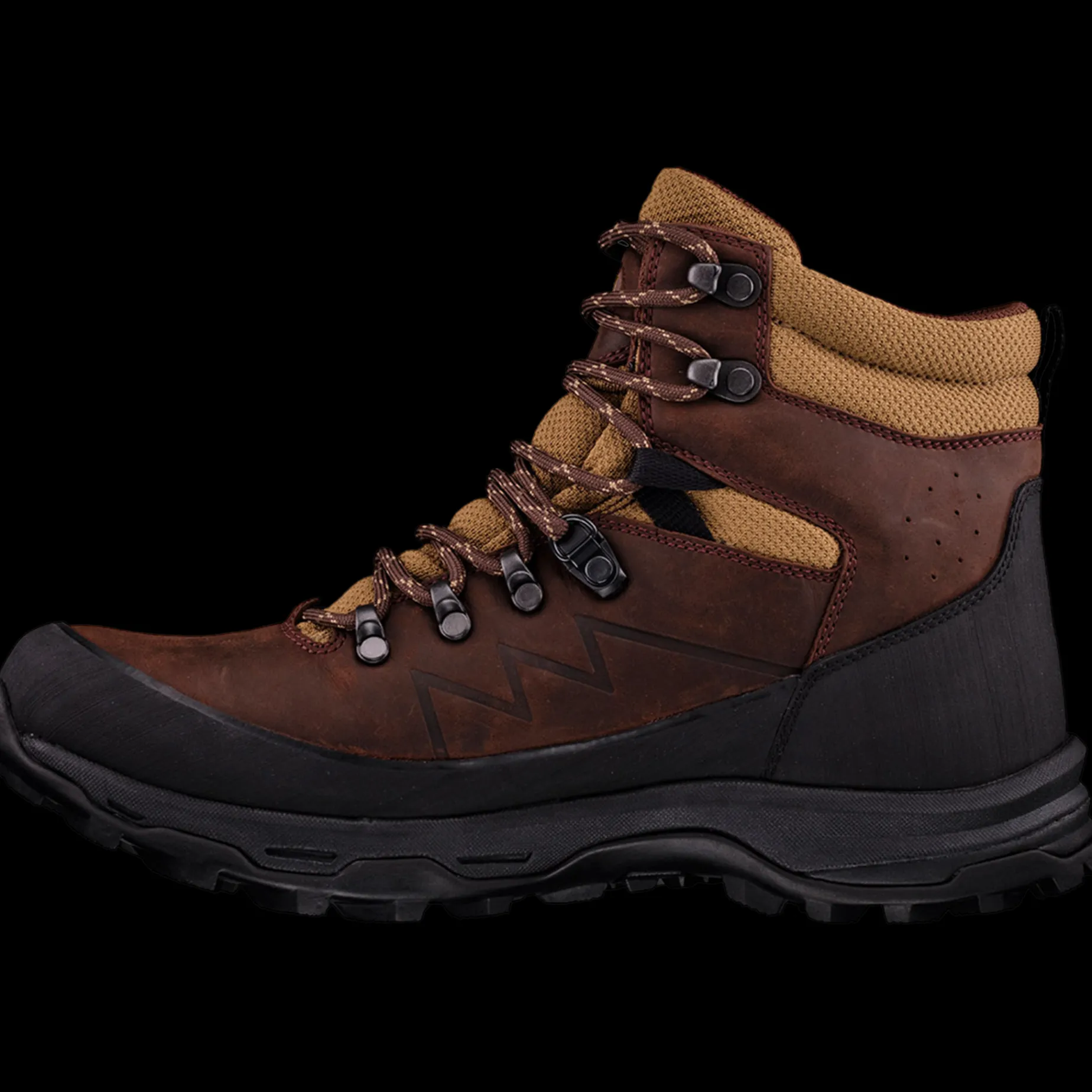 Overdelen er kledd med fullnarvet skinn og tekstil for en slitesterk konstruksjon. Den er utstyrt med en Mudguard som beskytter mot steiner og gjørme.