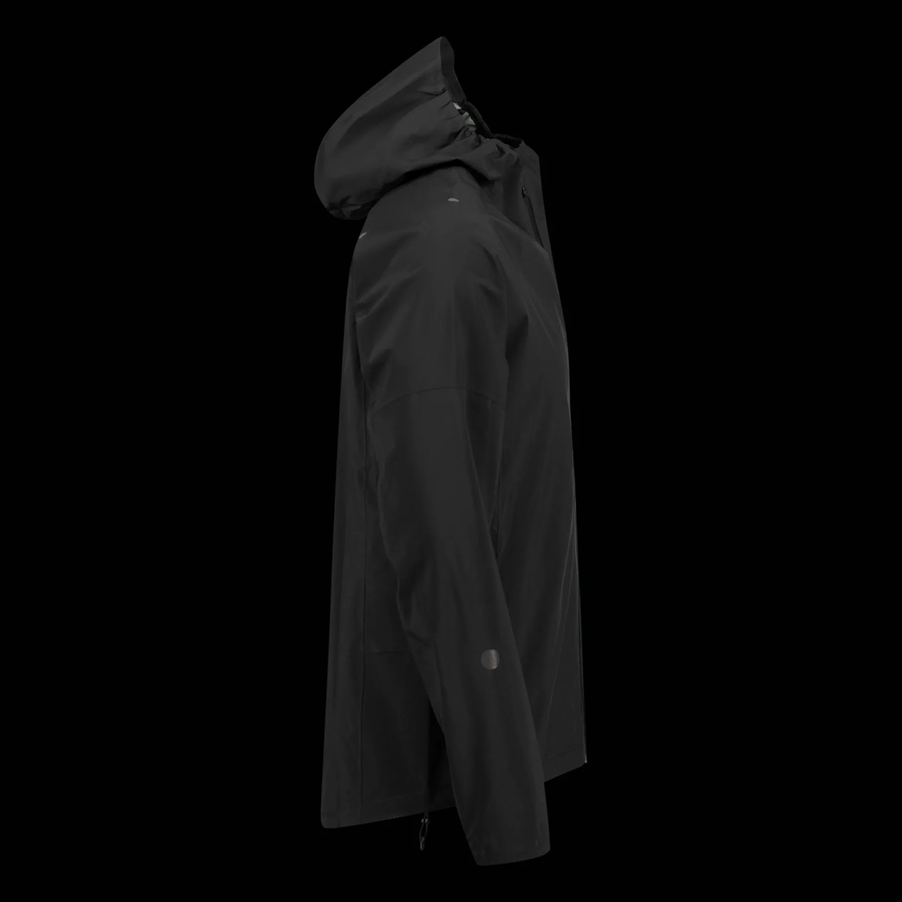 Vanntett treningsjakke med justerbar hette produsert med vindavvisende materiale. Praktiske lommer. Kan pakkes inn i brystlommen. Justerbar nedre kant. Reflekterende detaljer.