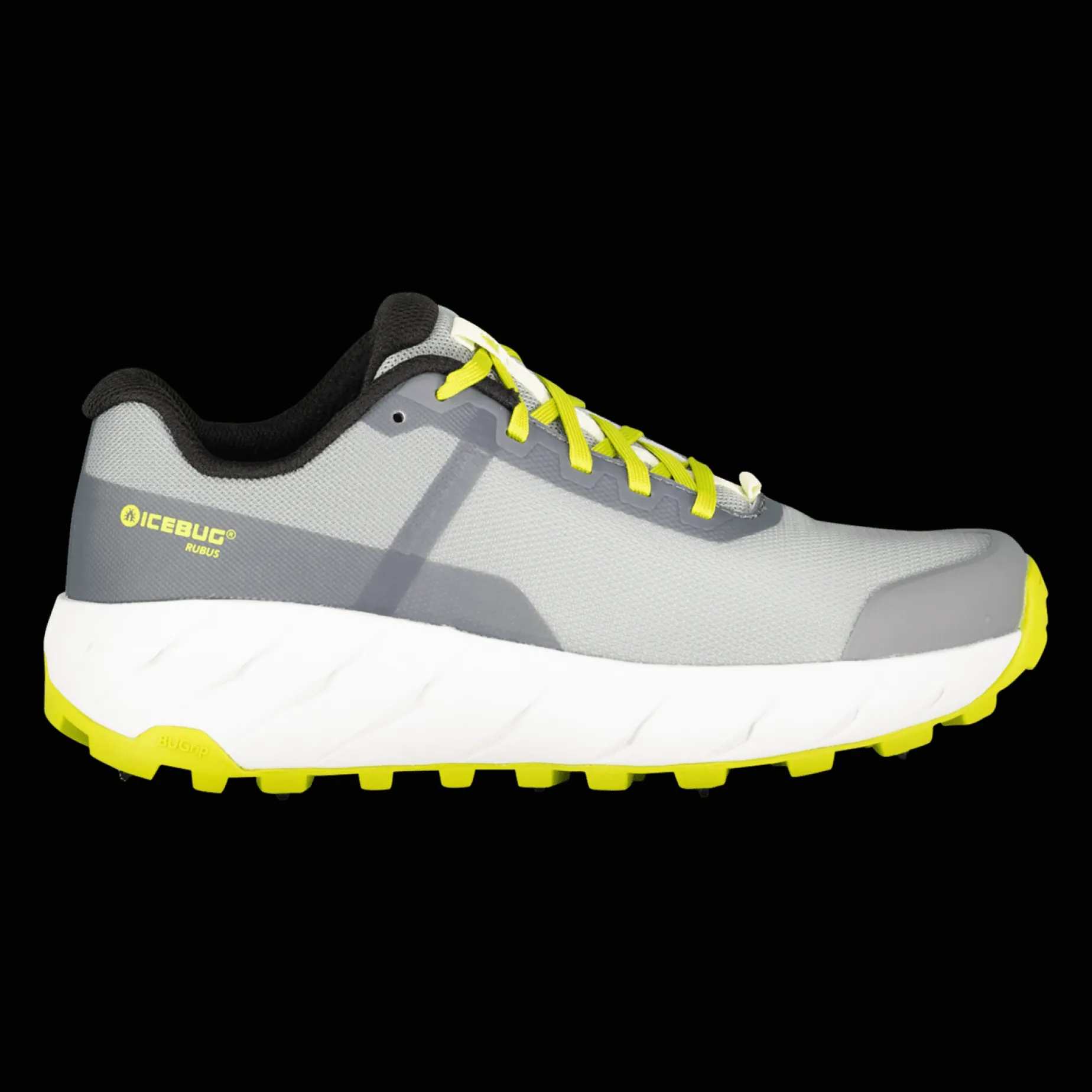 Icebug Rubus BUGrip kommer med 13 stålpigger som gir løpeskoen deg utmerket grep på is og glatt underlag. Løpeskoen passer godt for bruk på asfalt.
