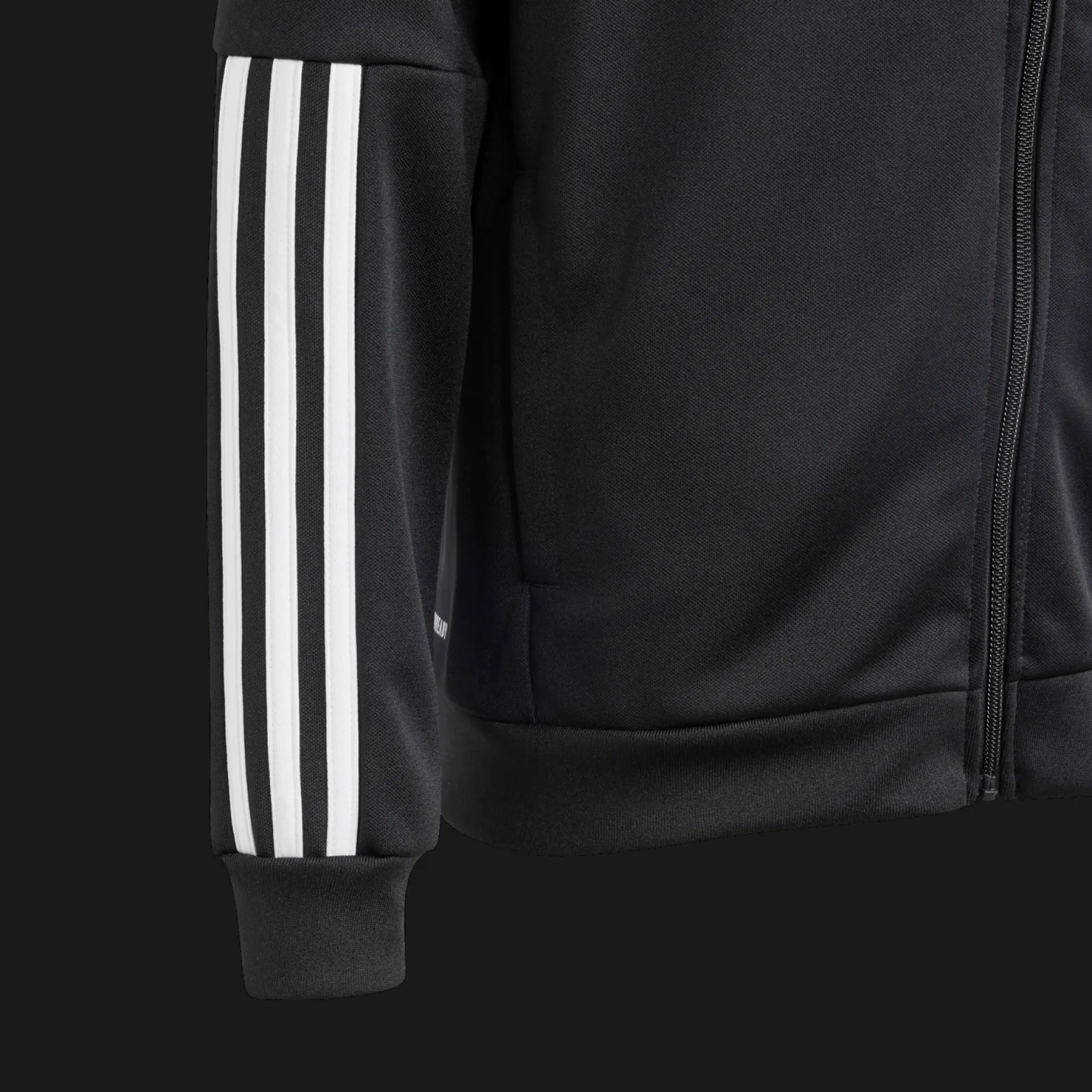 Jakken har en klassisk passform med ståkrage, full glidelås i front og elastiske mansjetter og nederkant. Ikoniske striper langs armene for et autentisk design.