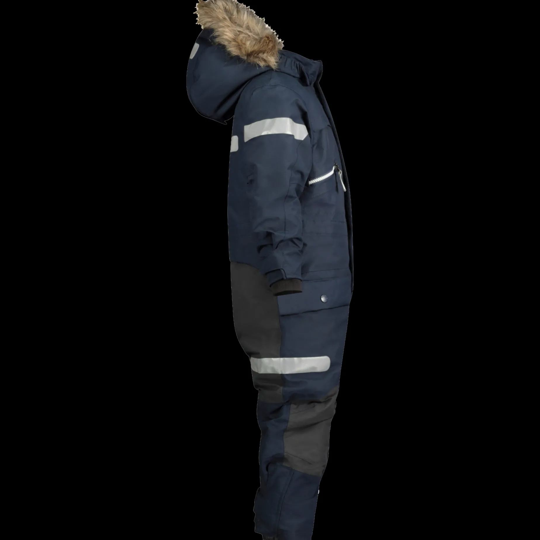 Praktisk, Slitesterk og varmfôret vinterdress i vind- og vanntett materiale (10 000 mm vannsøyle og teipede sømmer). Ekstra forsterkninger på utsatte steder. Mange praktiske lommer og refleksdetaljer.