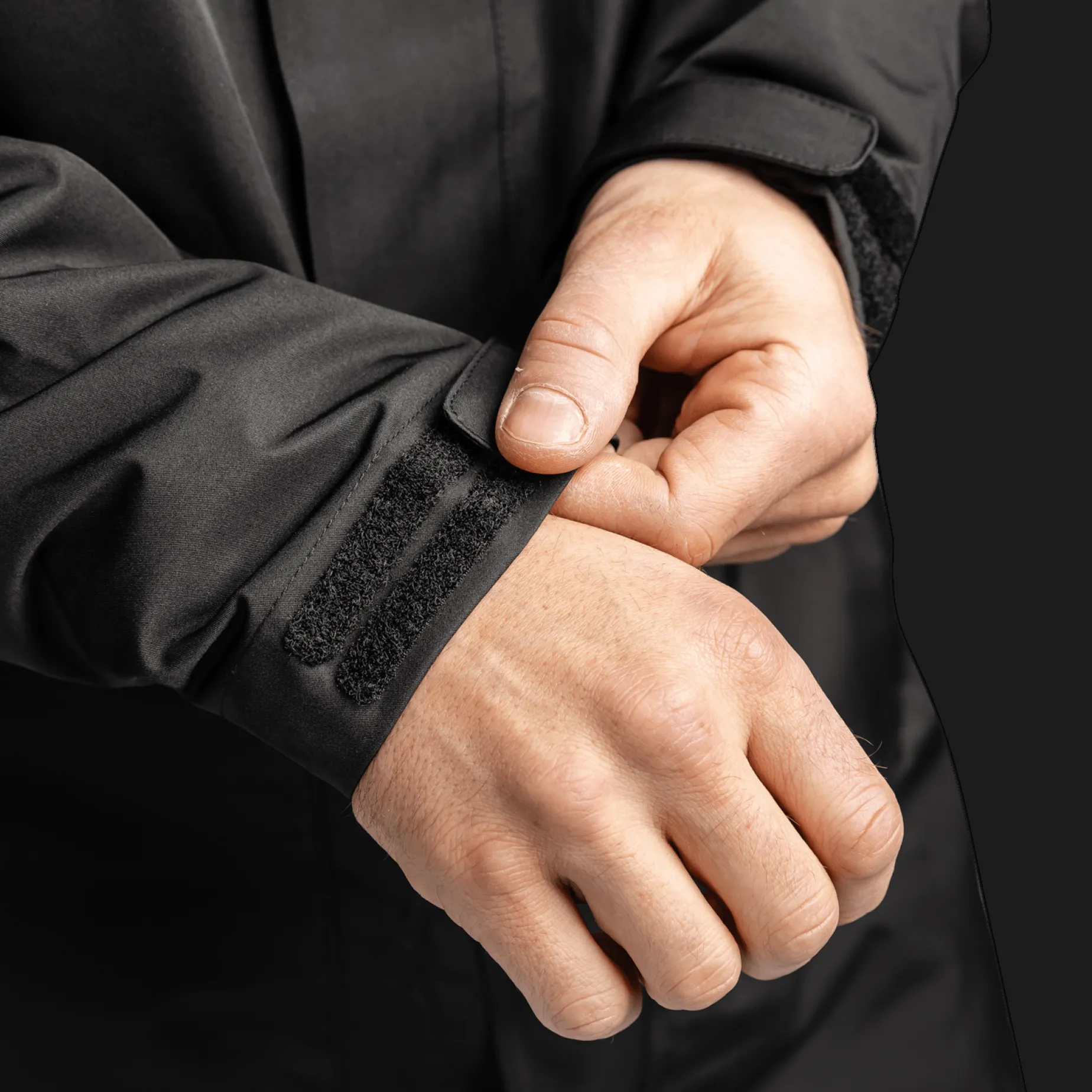 Jakken har flere praktiske lommer og gode justeringsmuligheter på ermer og i hetten, som gir en optimal passform.