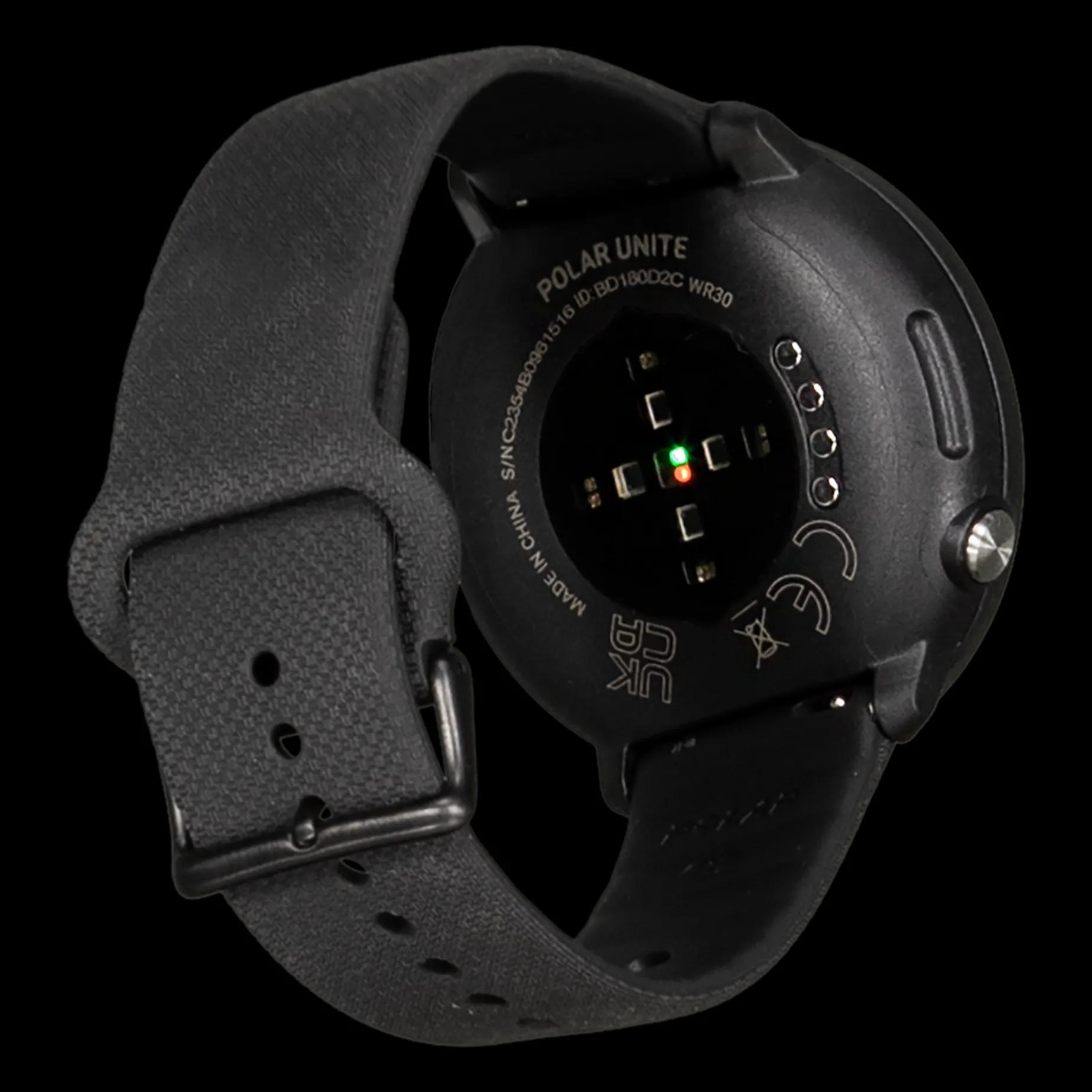 Polar Unite treningsklokke, ekstra reim i større størrelse, USB-ladeadapter, brukerhåndbok, informasjonsnotat