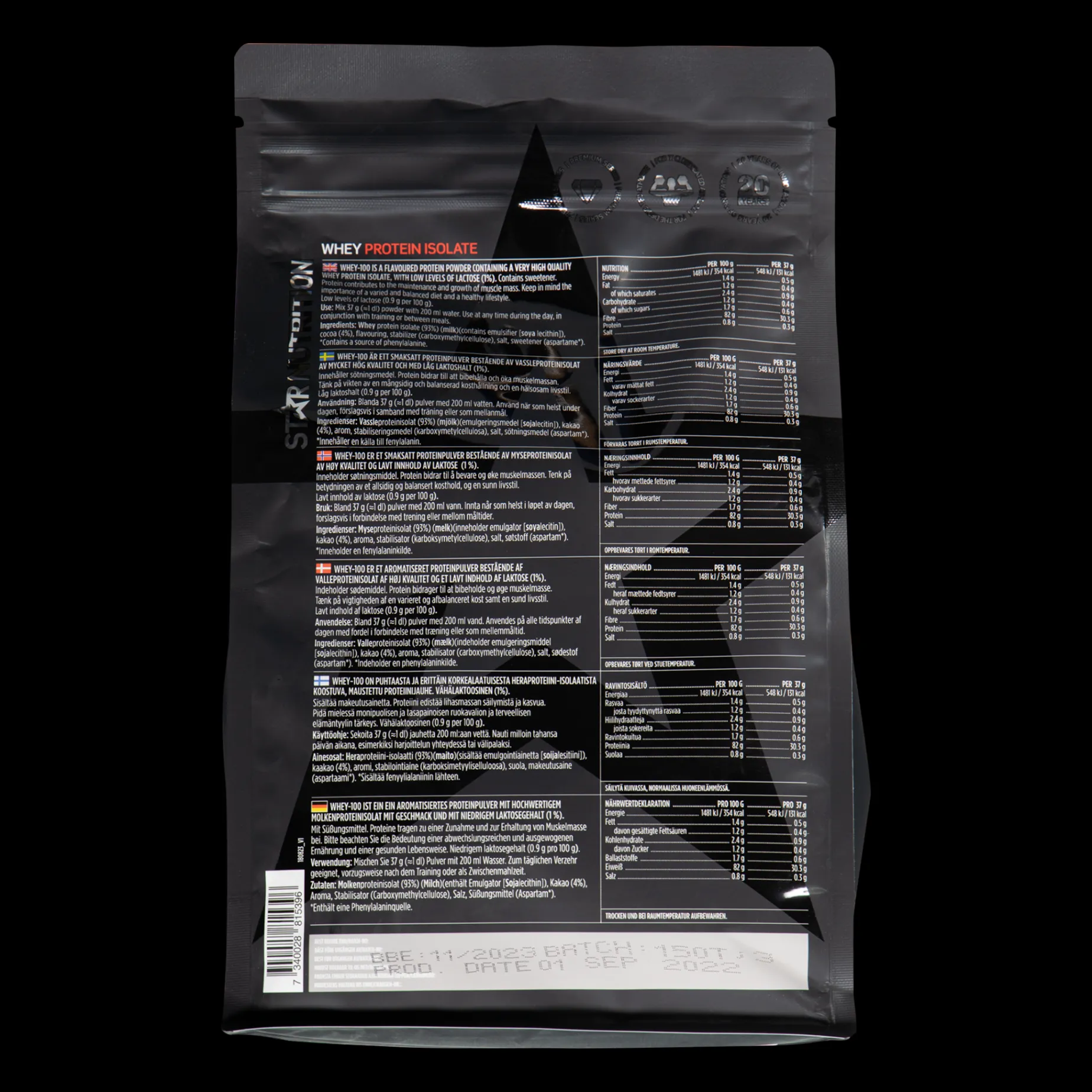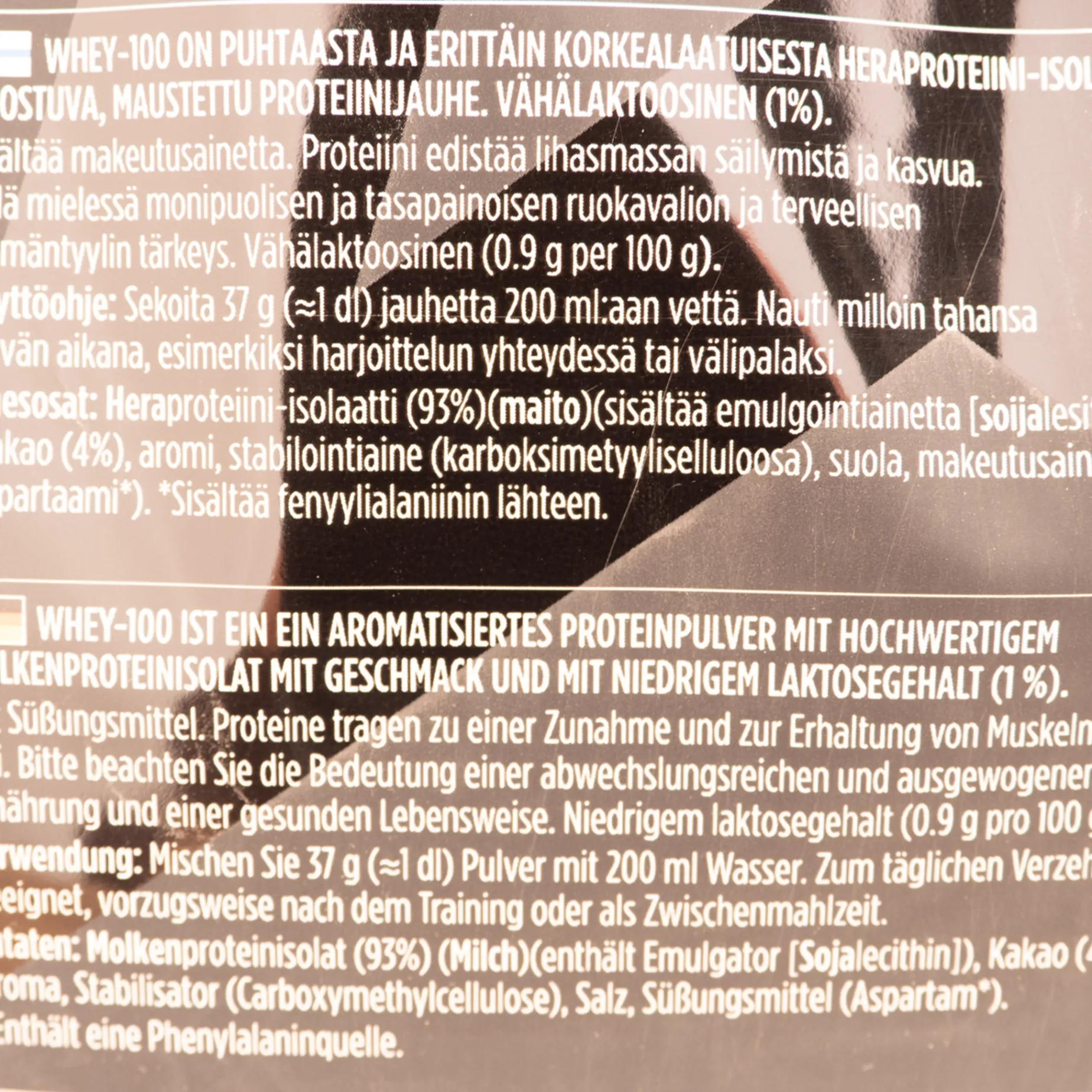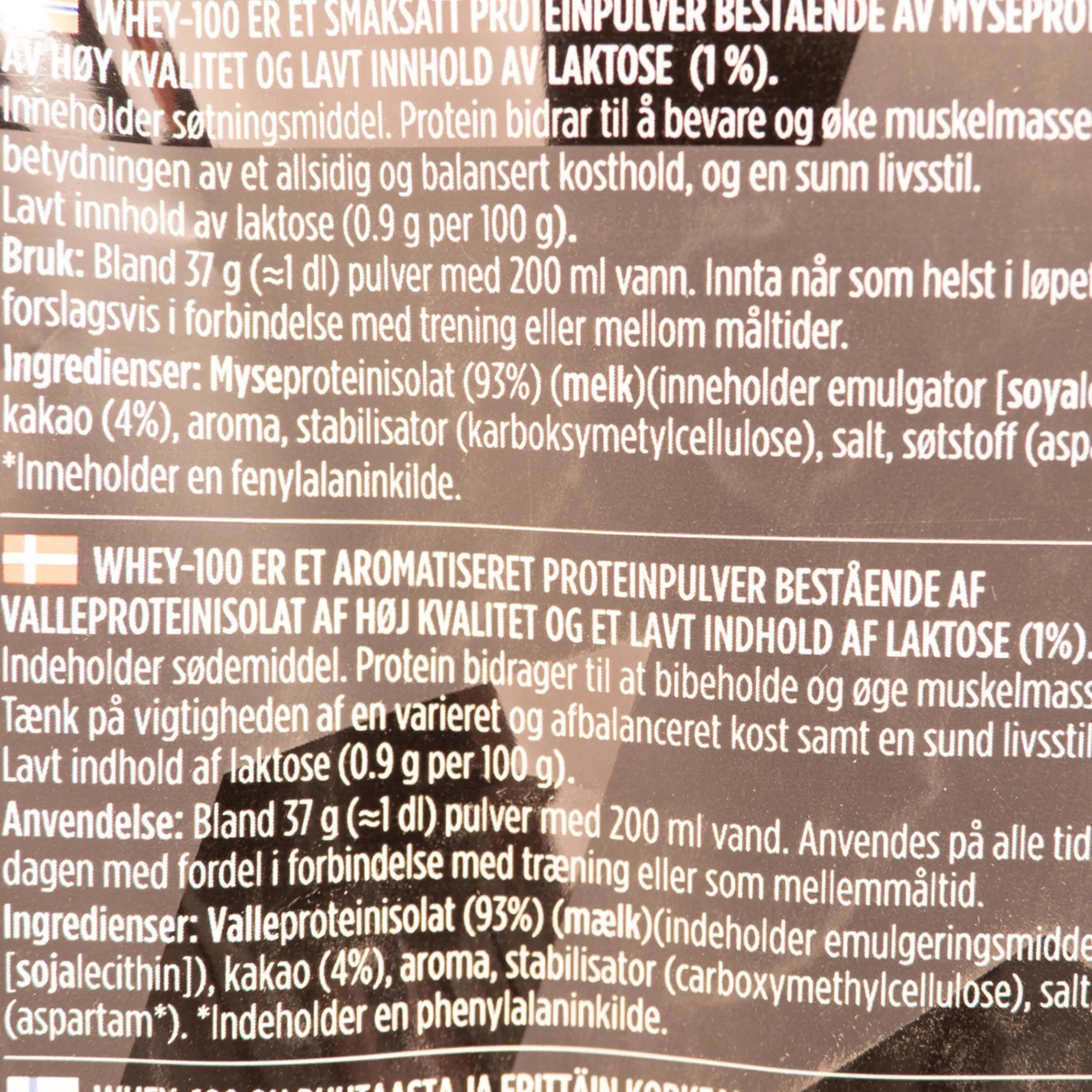 Proteinpulveret består av 100 % mysteproteininsolat som tas opp i kroppen raskt. Har et lavt innhold av laktose, fett og karbohydrater.