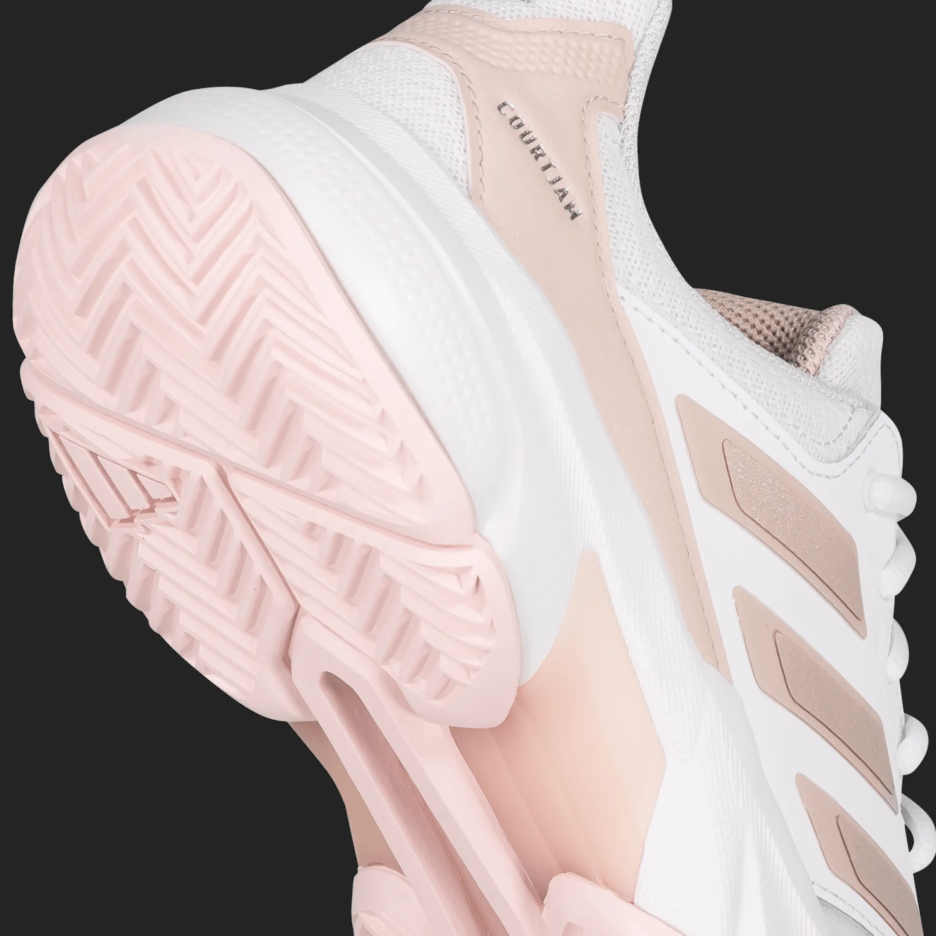 adidas Courtjam Control er en komfortabel tennissko produsert med minst 20 % resirkulerte materialer som er en del av adidas sitt arbeid for å redusere plastavfall.