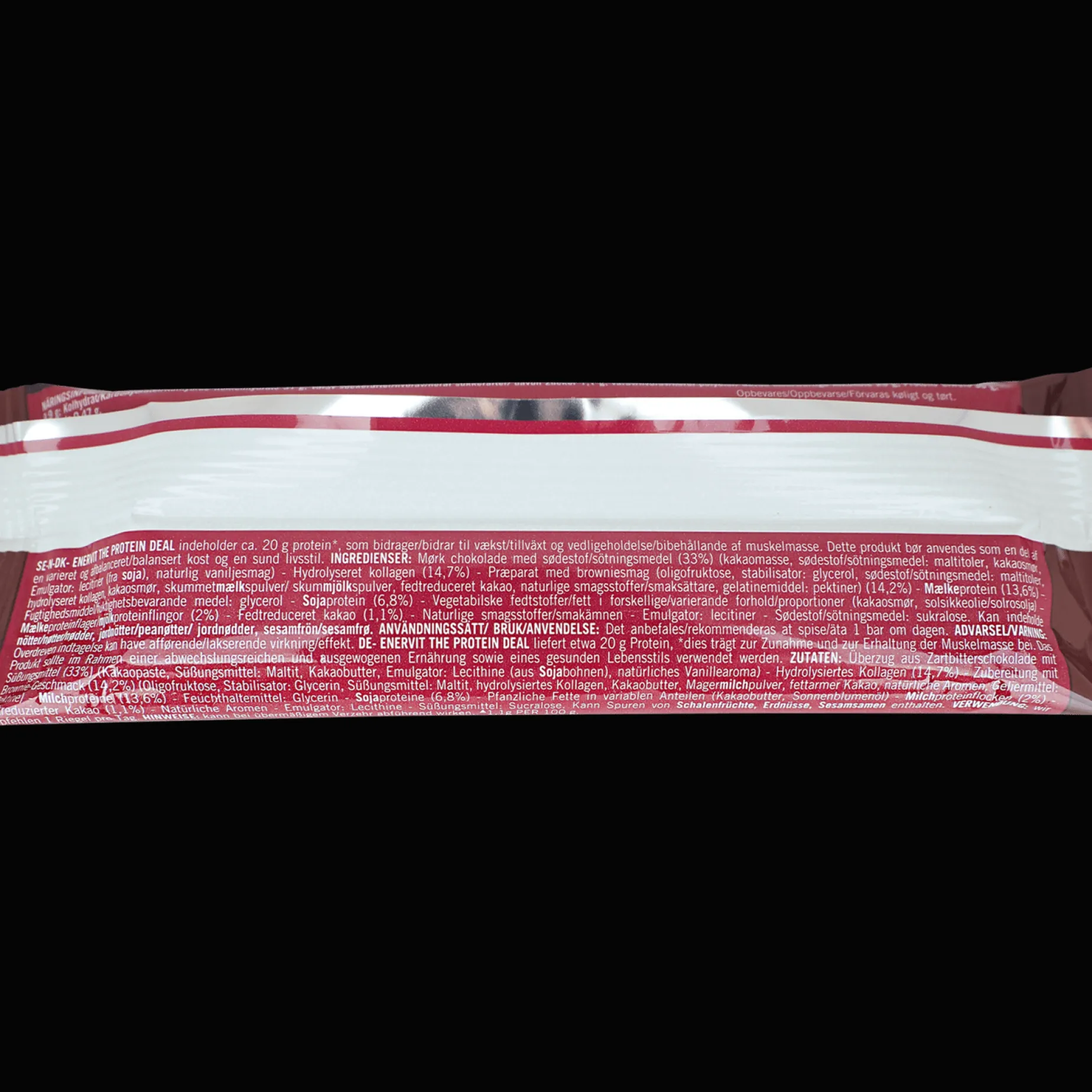 Velsmakende og glutenfri proteinbar med et belegg av mørk sjokolade og et deilig kremet browniefyll. Fri for palmeolje. Volum: 55 g.
