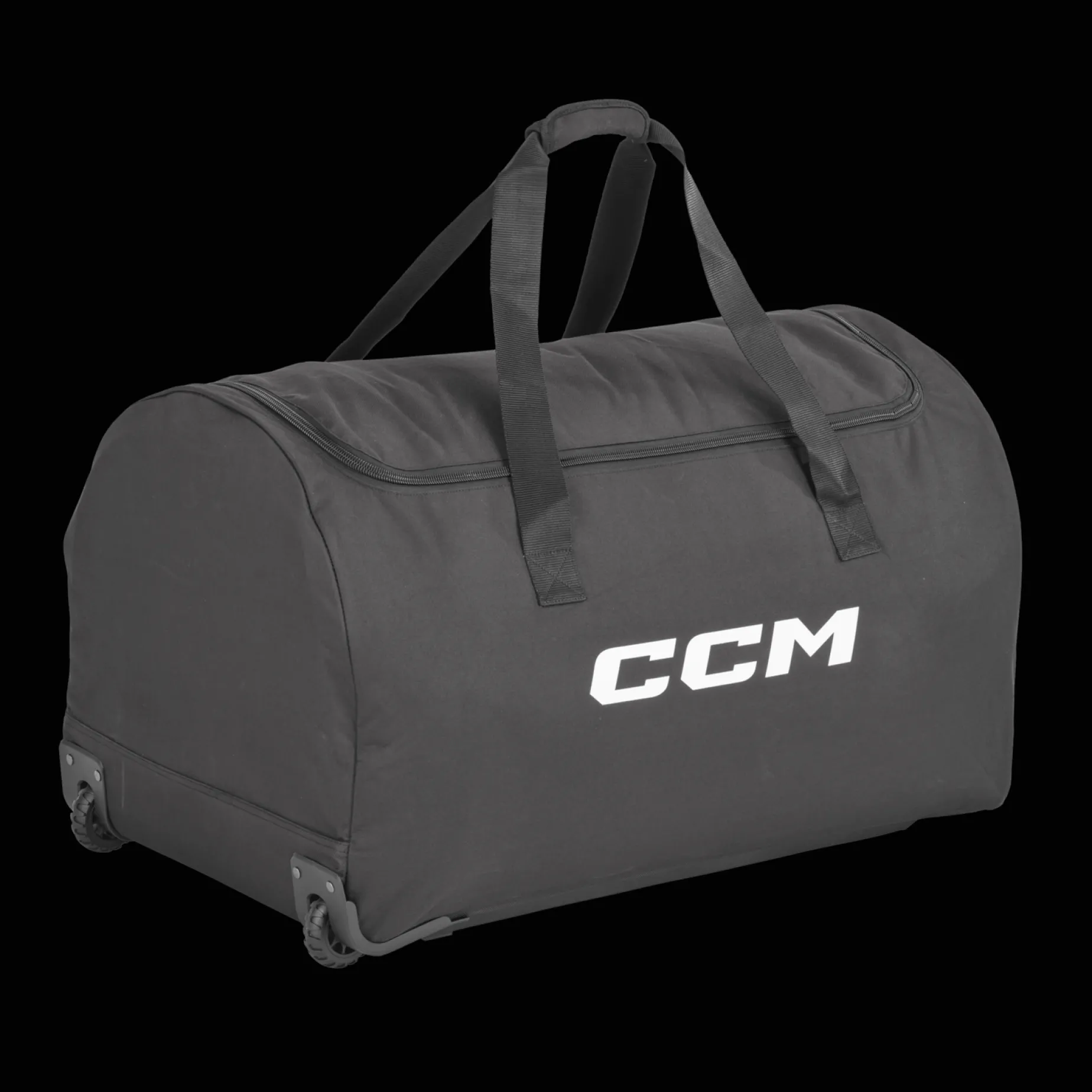 Praktisk trillebag til hockeyutstyr med slitesterke hjul og solid håndtak. God plass til oppbevaring.