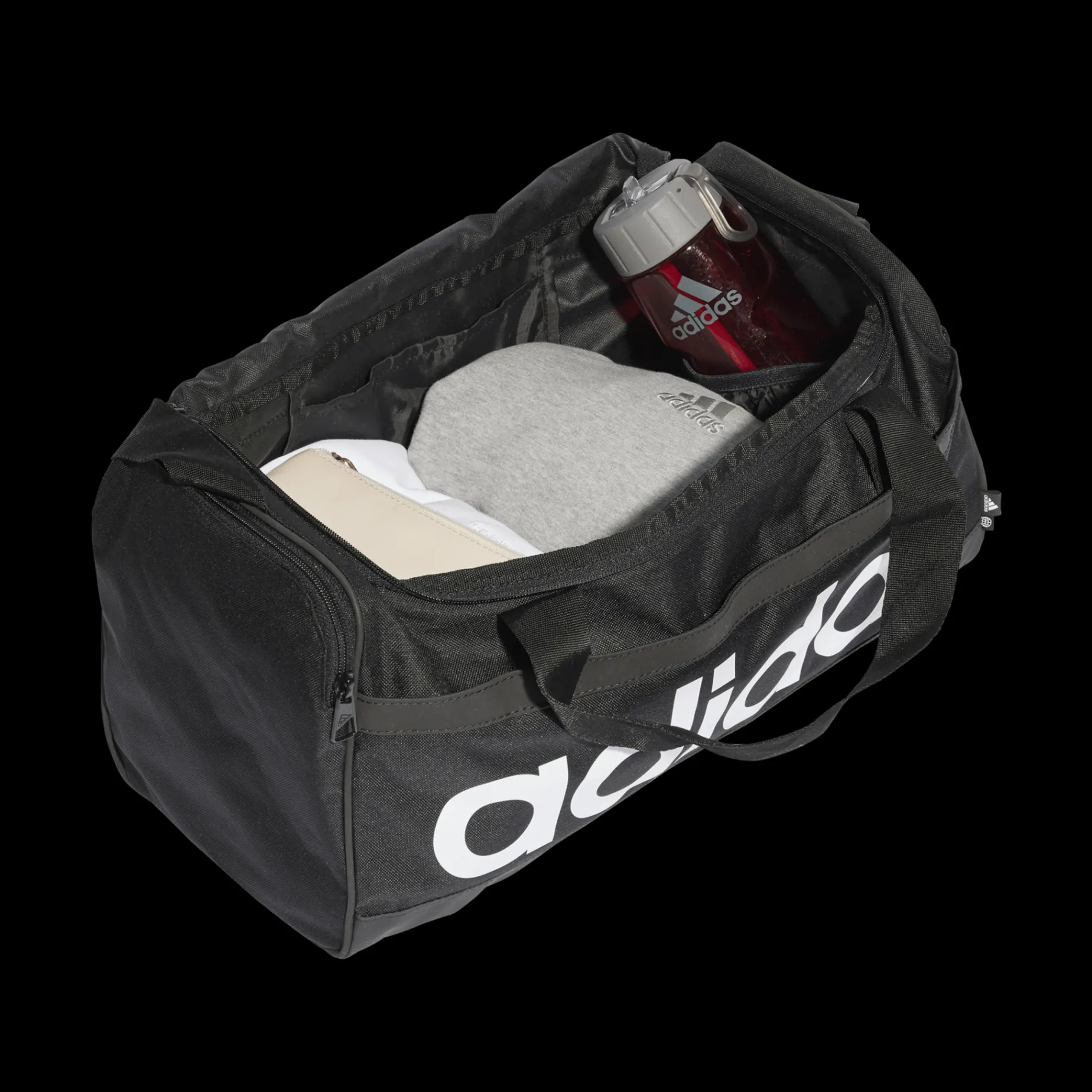 adidas Essentials Duffel Bag er en praktisk bag laget med minst 40 % resirkulerte materialer som er en del av adidas sitt arbeid for å redusere plastavfall.