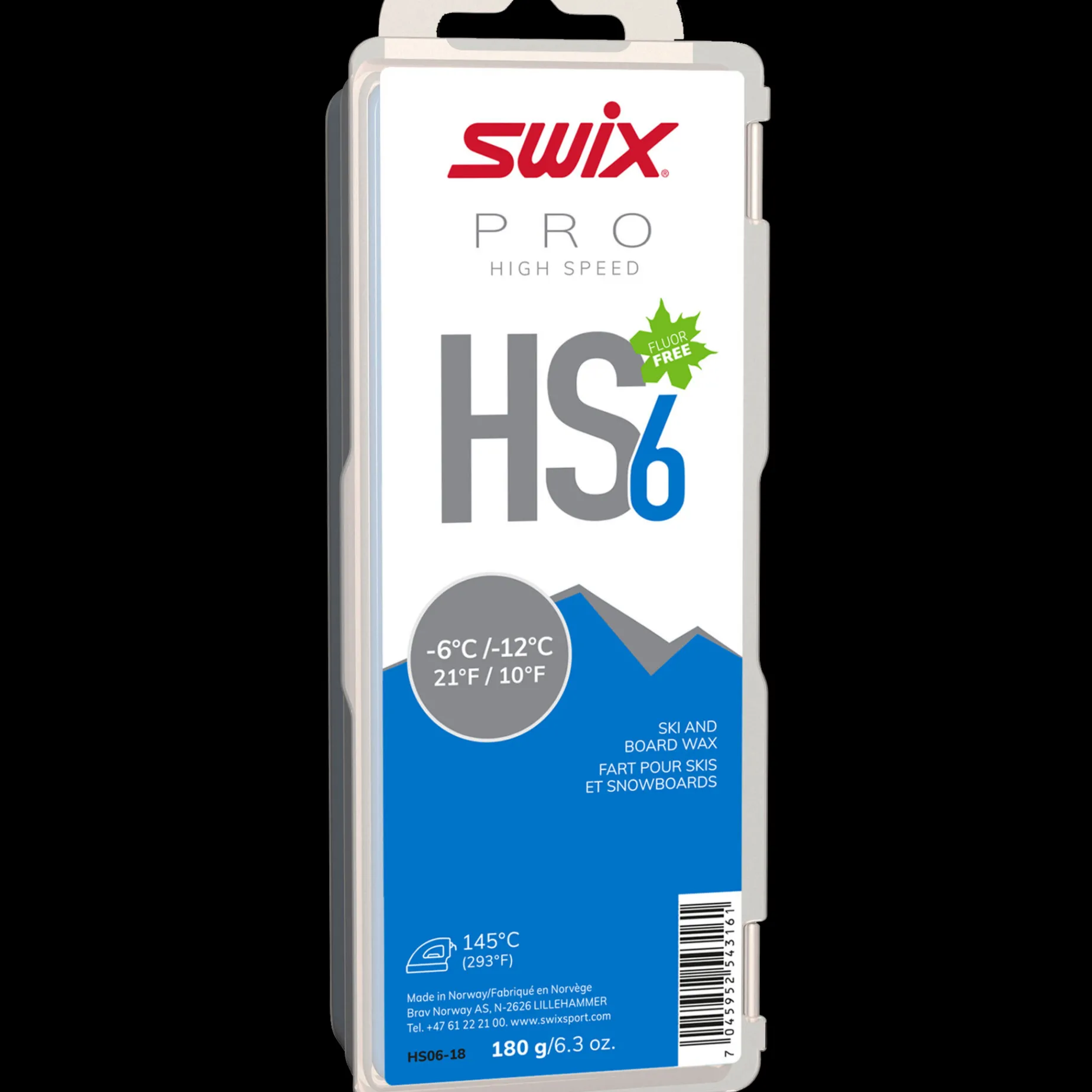 HS6 er meget allsidig. Bruksområdet strekker seg fra underlagsvoks for pulver, til racingvoks og base-prep voks for kaldski. HS6 har god holdbarhet og gir meget god glid både på natur- og kunstsnø.