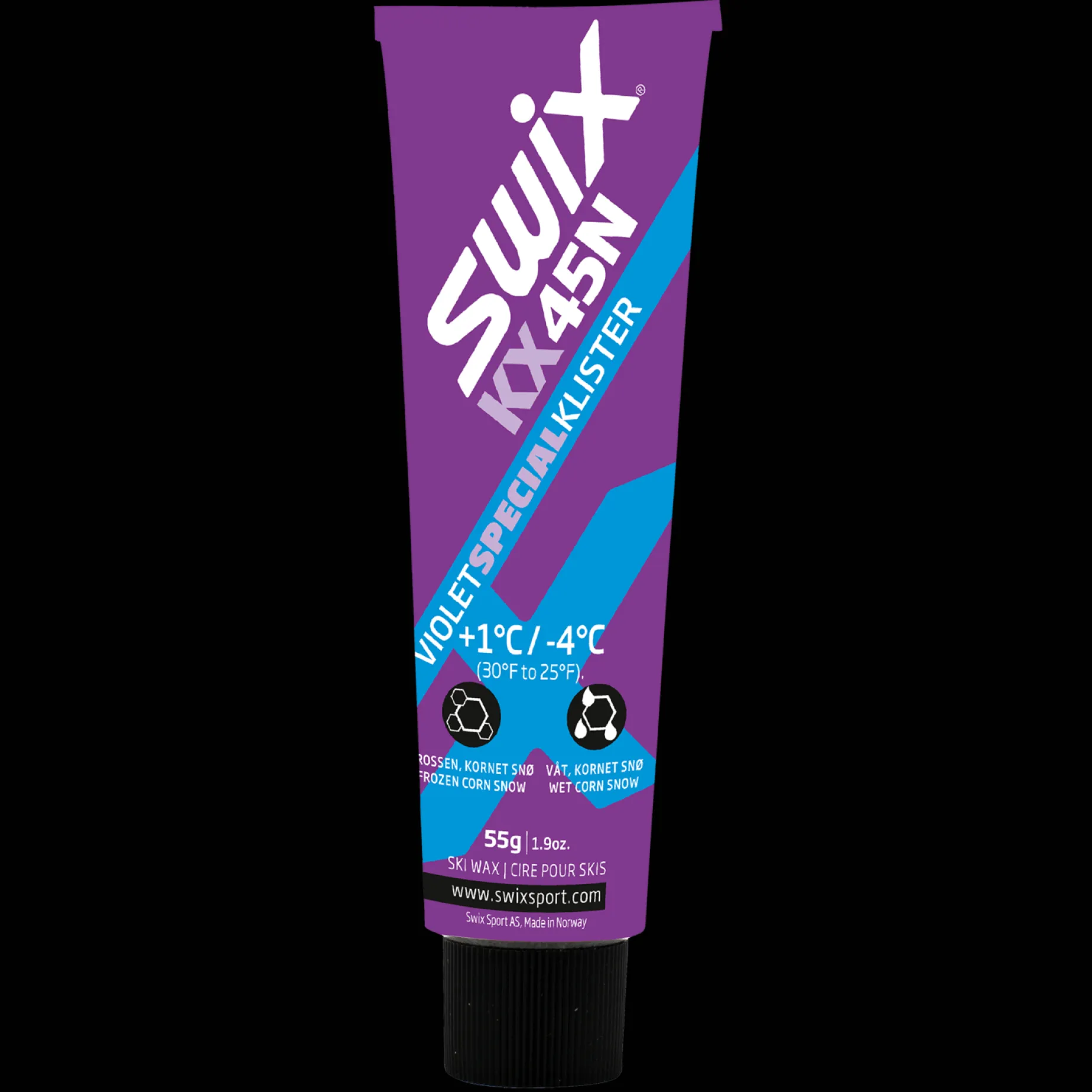 Swix KX45N kan brukes både som topplagsklister på grovkornet snø og som mellomlag oppå basisklister, dekket med våtklister. Denne klisteren har vist gode resultater på temperaturer rundt null grader.