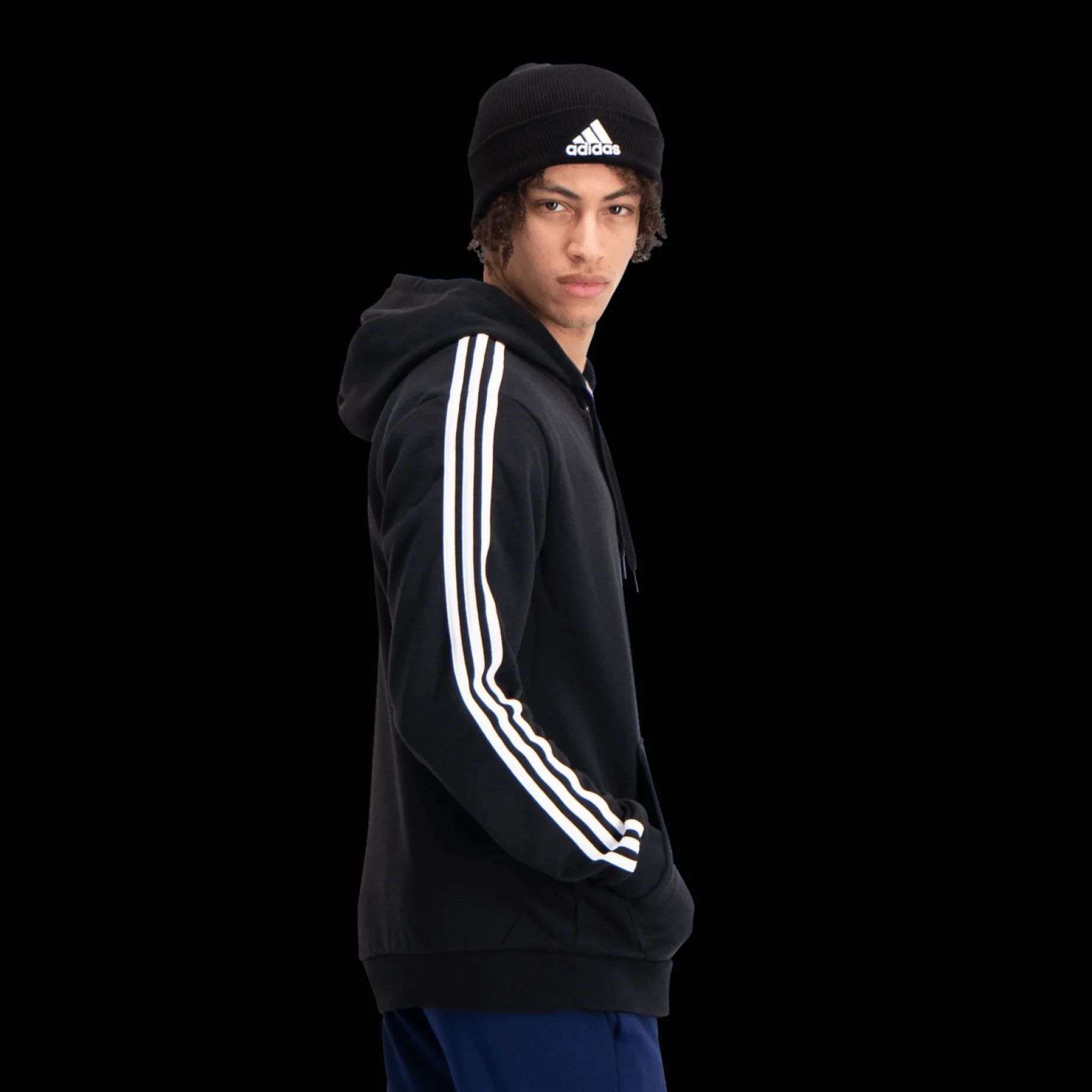 Klassisk, ribbestrikket lue med oppbrettet kant og Adidas-logo i front. Passer utmerket til hverdags på kjølige dager.
