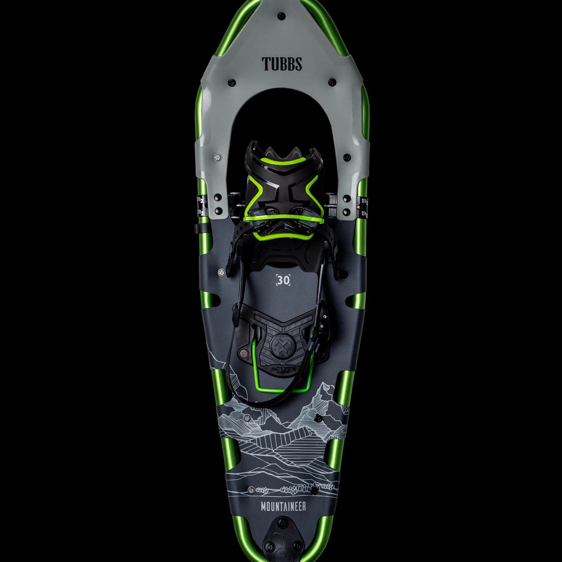 Mountaineer 30 er toppmodellen til Tubbs med kraftige stegjern foran, bak og på siden, noe som gir overlegent feste og god komfort under krevende turer på all slas underlag.