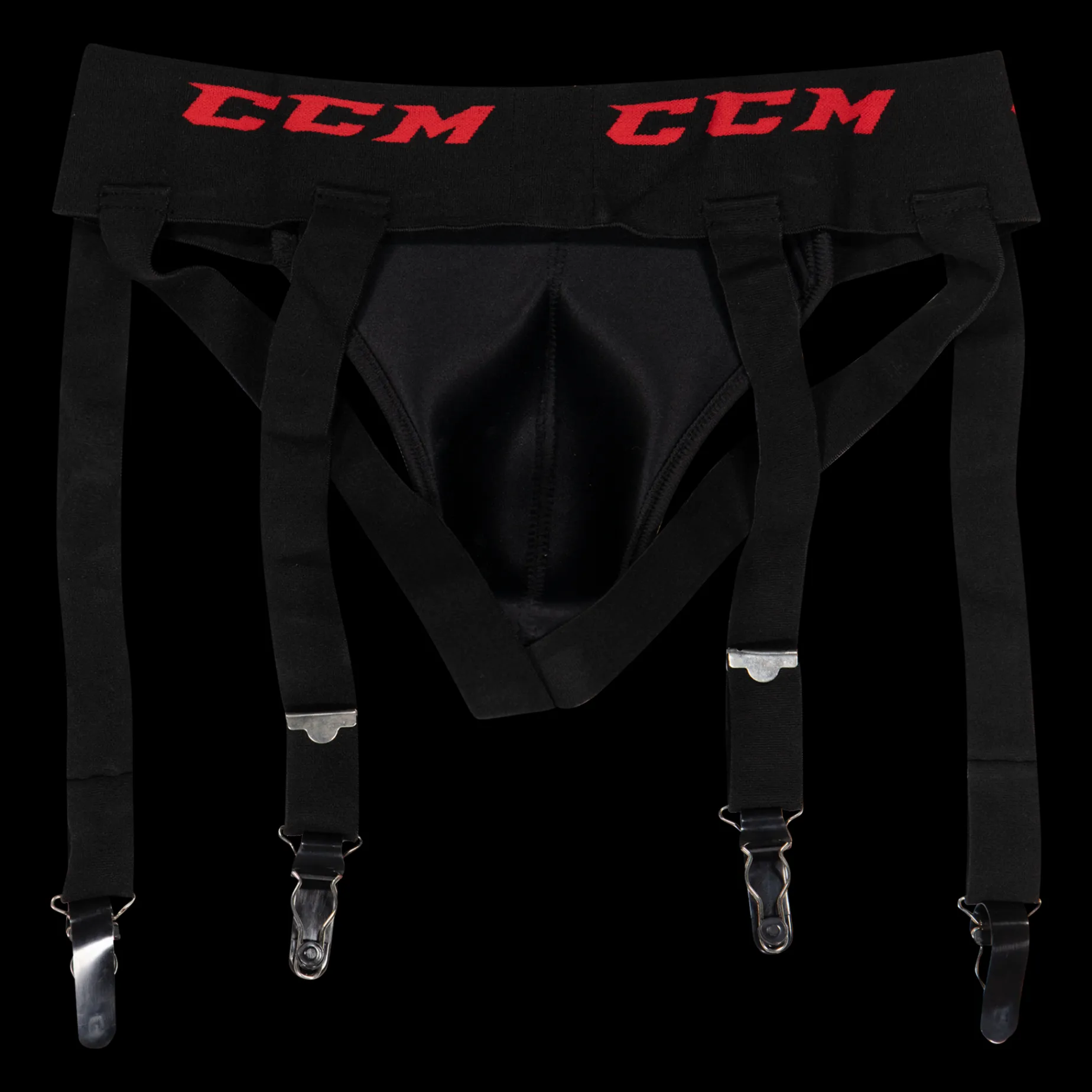 Solid susp til hockey, med integrert holder til gamasjer. Det elastiske gummibåndet gir meget god passform med suspen. Dobbel borrelås for koppstabilitet.