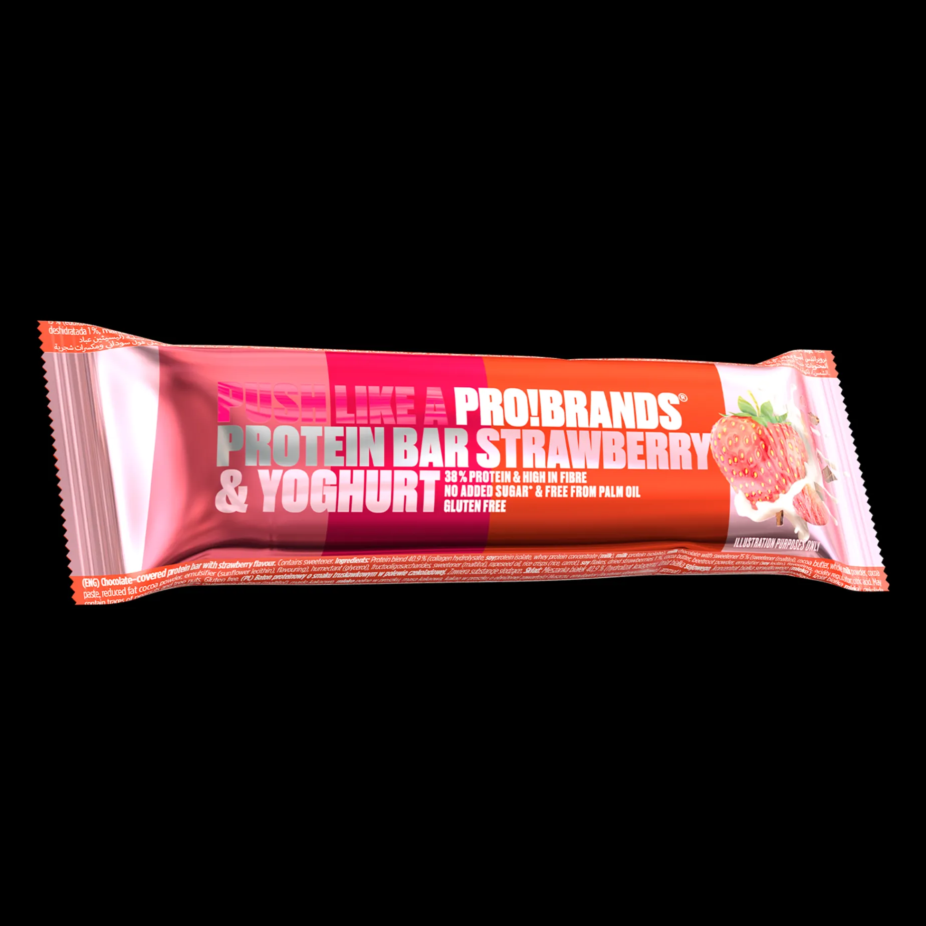 Smakfull proteinbar med smak av jordbær og yoghurt med sjokolade-overtrekk. Hver proteinbar inneholder 165 kalorier. Inneholder søtningsstoffer.