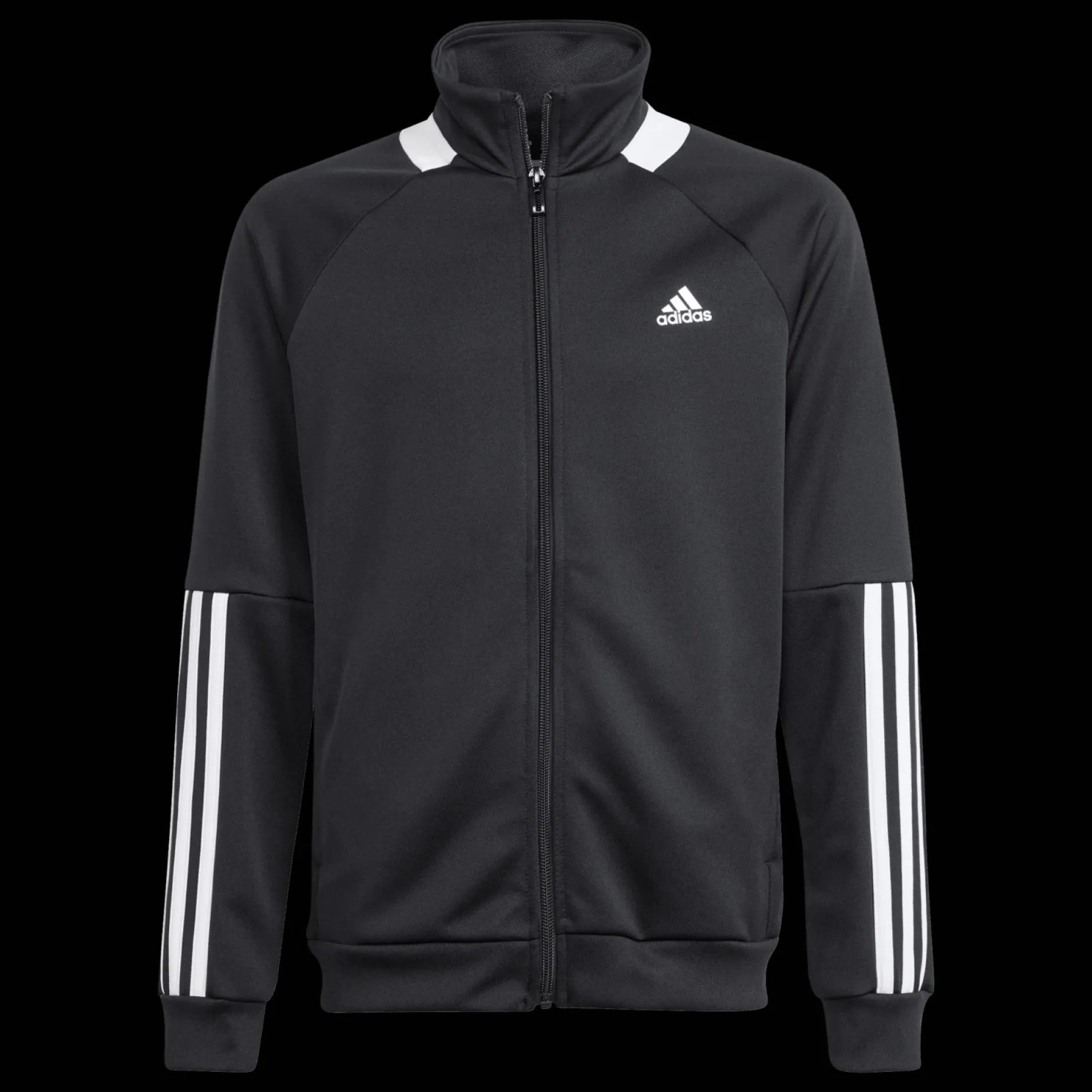 Jakken har en klassisk passform med ståkrage, full glidelås i front og elastiske mansjetter og nederkant. Ikoniske striper langs armene for et autentisk design.