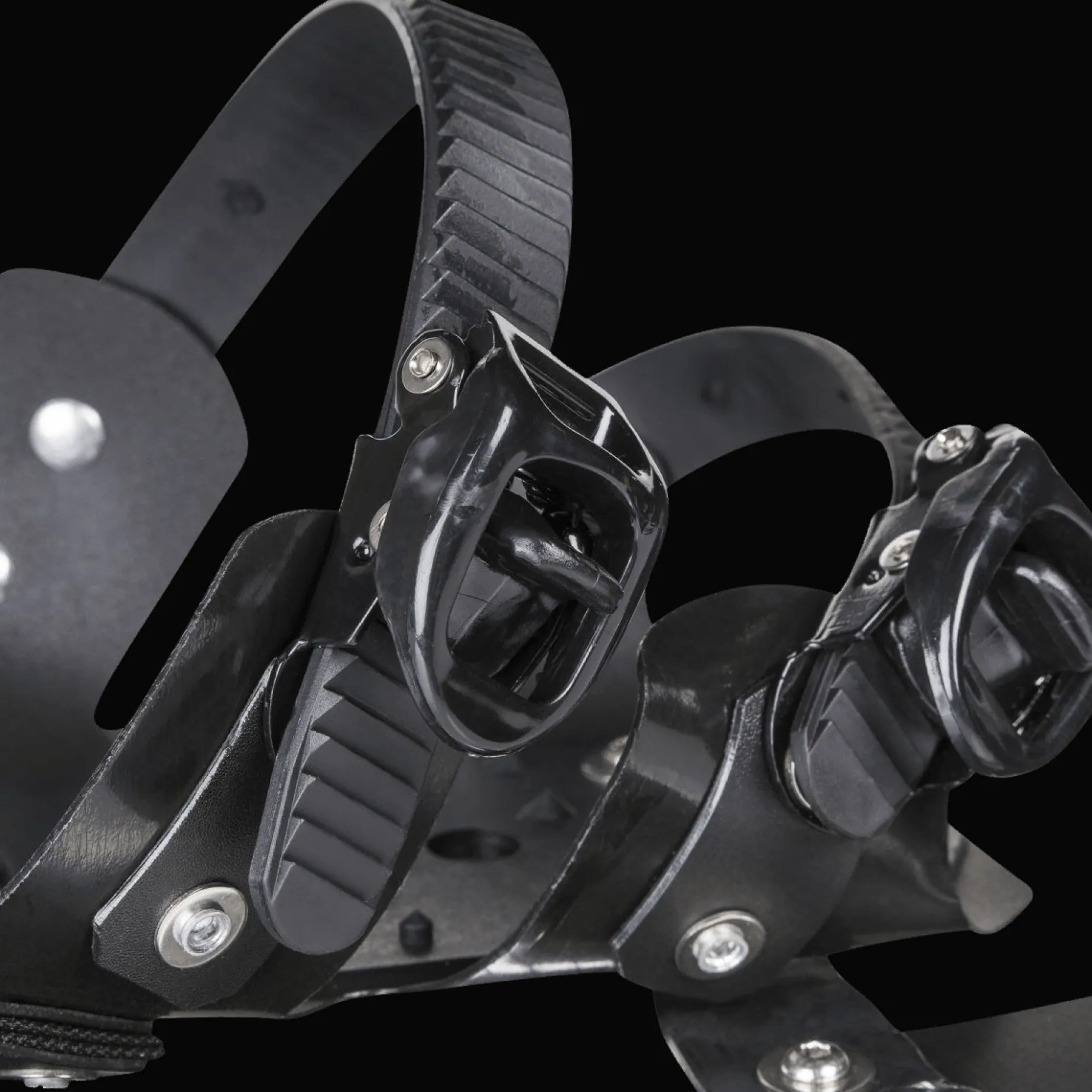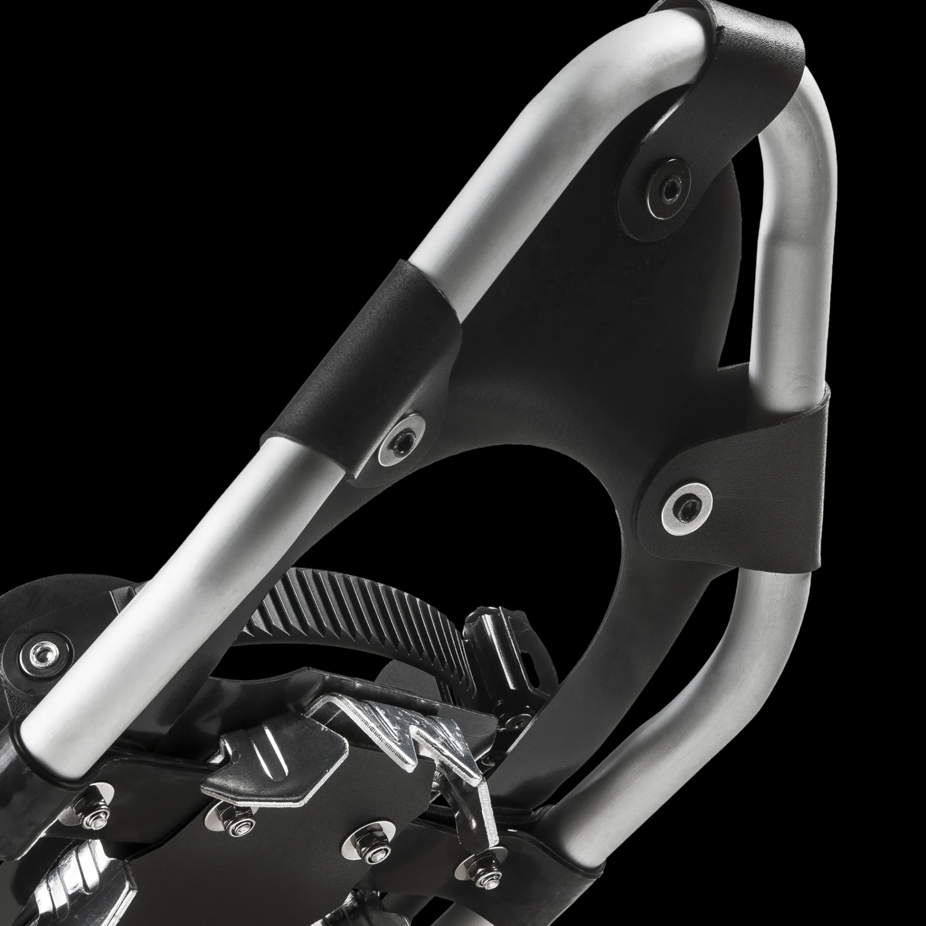 Pakke med truger og staver. Laget i lett, men sterk aluminium. Trugene er smale og bindingen er svært enkel å ta av og på. Gode gripeklør på undersiden.