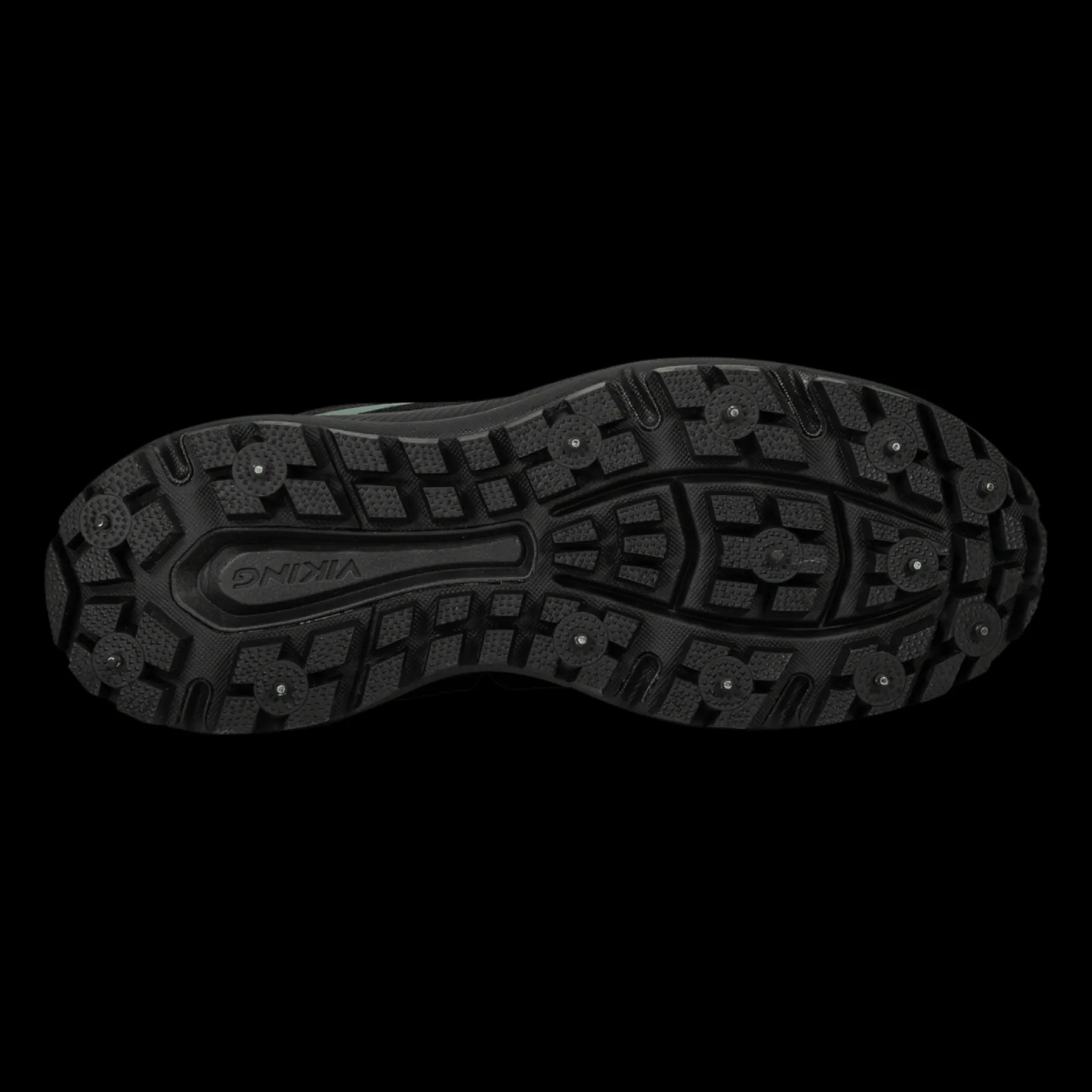 Yttersålen har gummi-materiale og pigger som sikrer god trekkraft og godt grep på underlaget.