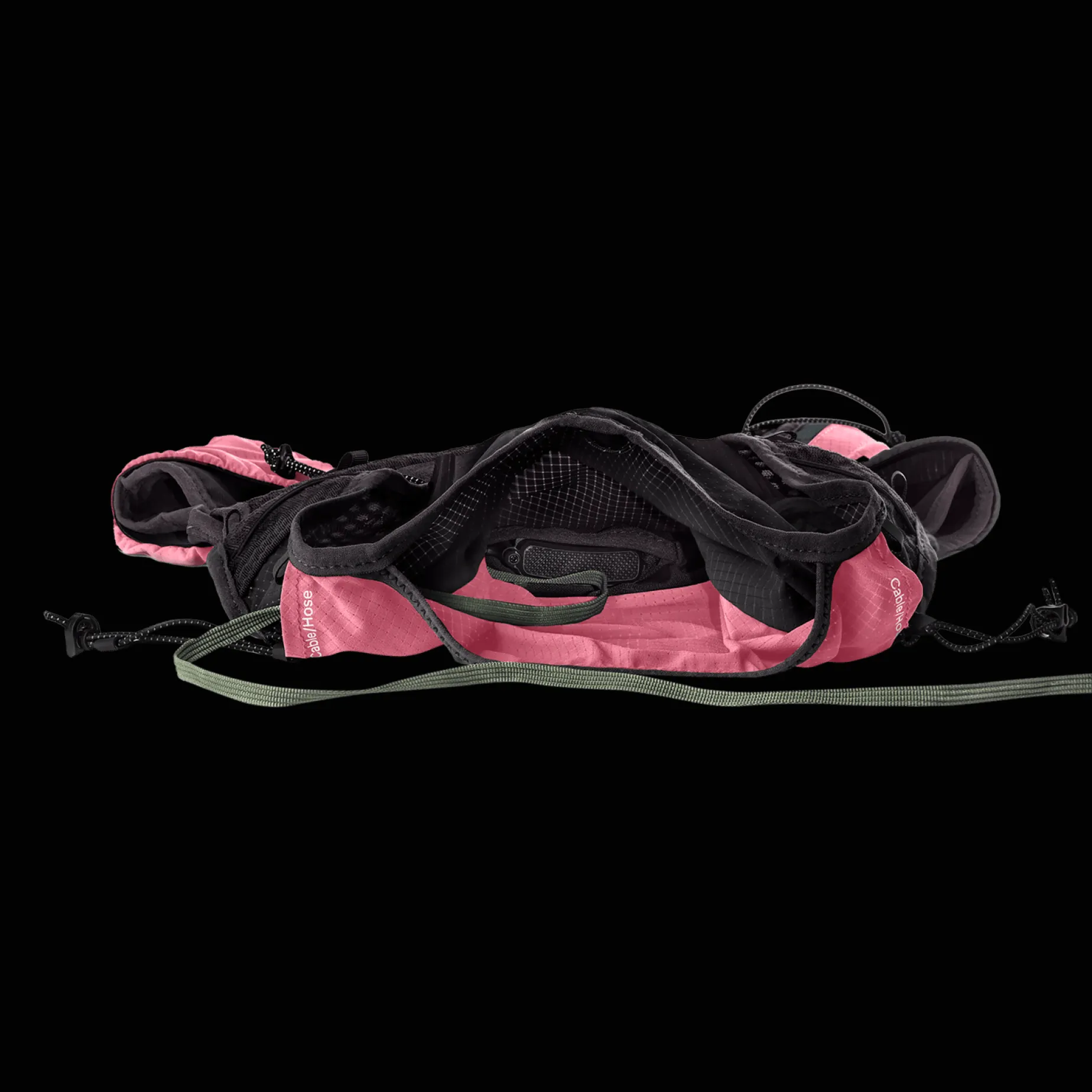 De store lommene gjør det enkelt å få tak i gels, bars eller hansker. Fest hodelykten på forsiden, oppbevar batteriet i en elastisk lomme bak og tre forlengelseskabelen gjennom kabelutgangene på skuldrene.