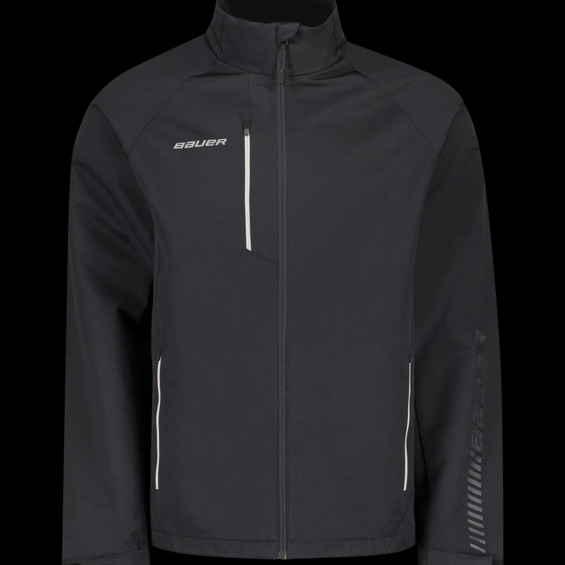 Lett, vannavvisende jakke med YKK-glidelås. Lommer på siden og på brystet. Hel glidelås foran. Justerbare mansjetter og logodetaljer.