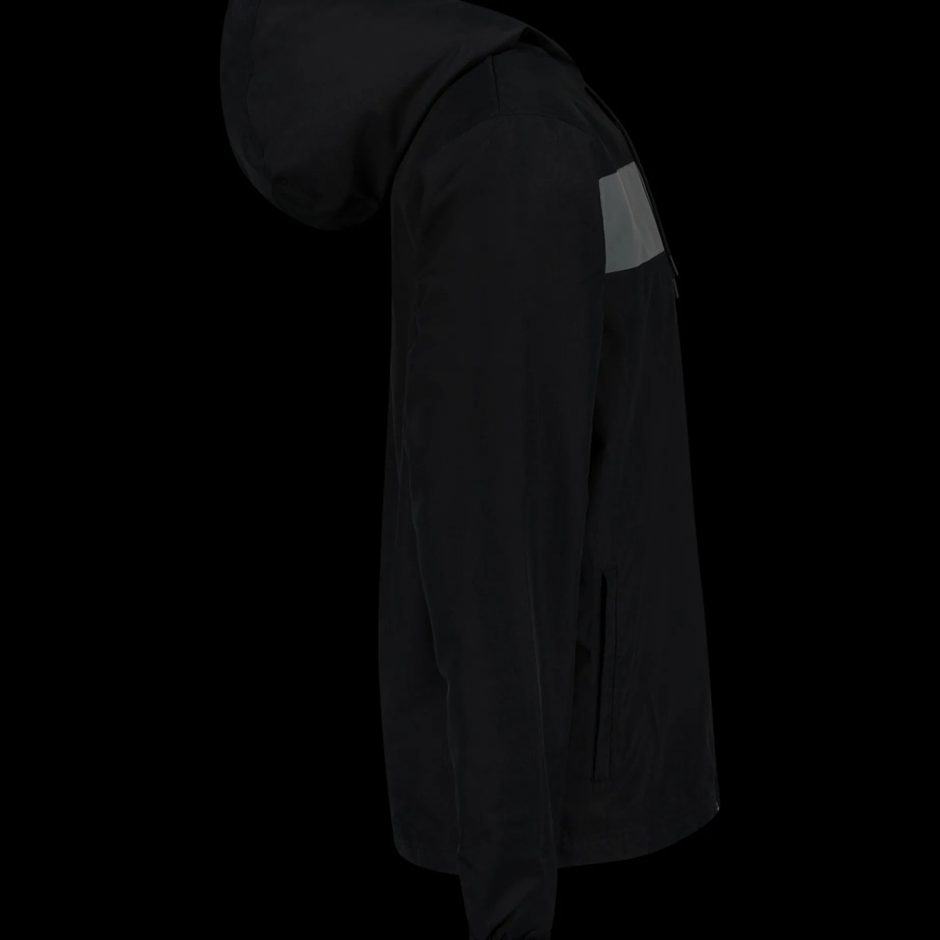 Lommer på hver side med glidelås, elastiske mansjetter som holder ermene på plass og gjennomgående glidelås i front.
