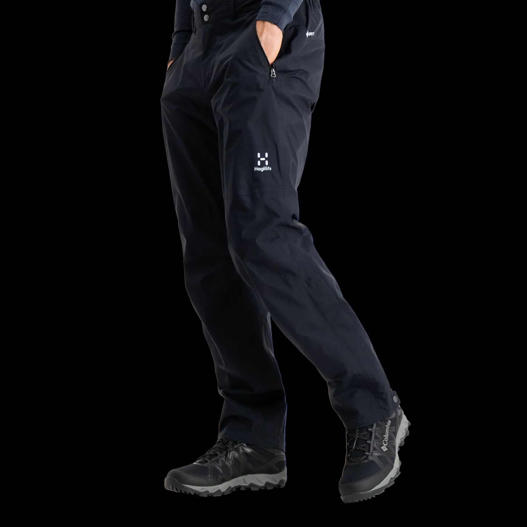 Langs leggene finner du en glidelås med kile, som gjør det enkelt å ta buksen av og på, samt å få den til å sitte over skoene eller fjellstøvlene dine.