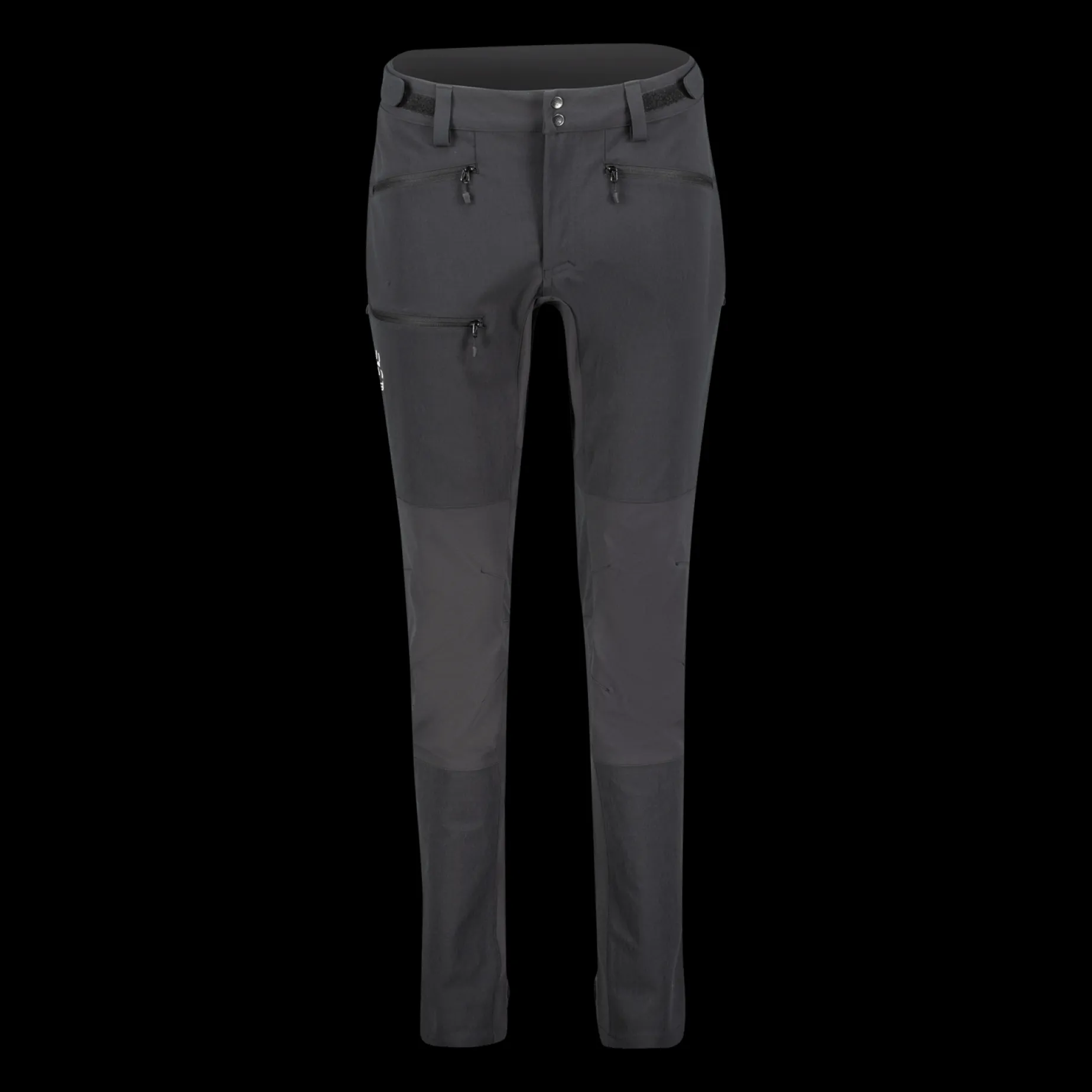 Softshellbuksen har tettsittende og justerbare bukseben som gjør det enkelt å ta buksen av og på.